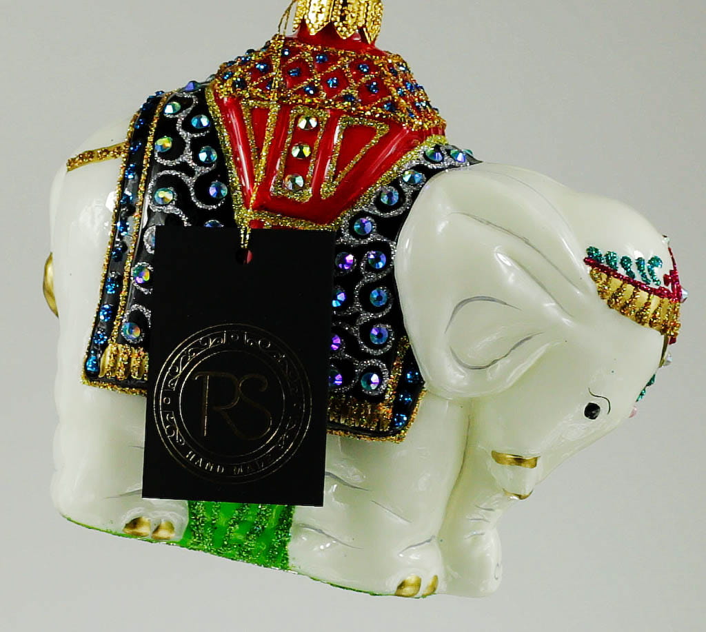 Słoń Indyjski duży bombka choinkowa szklana ręcznie malowana 10 cm