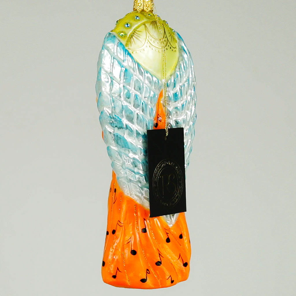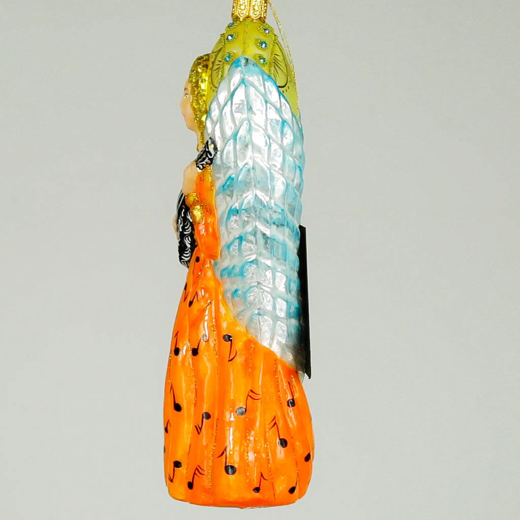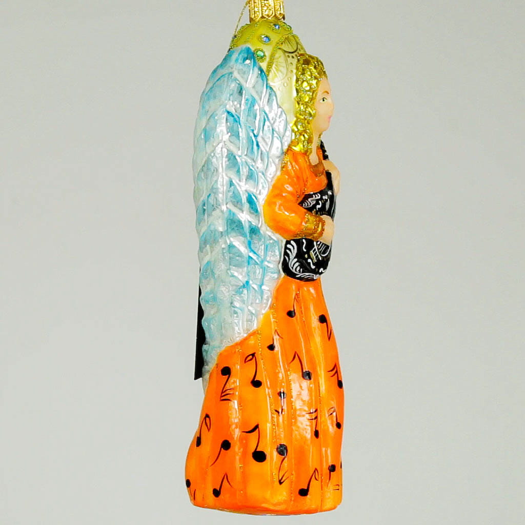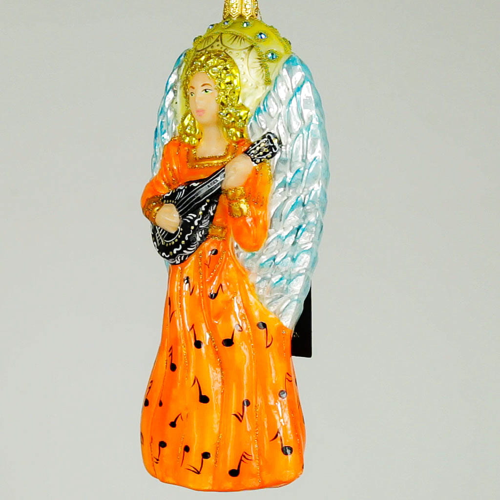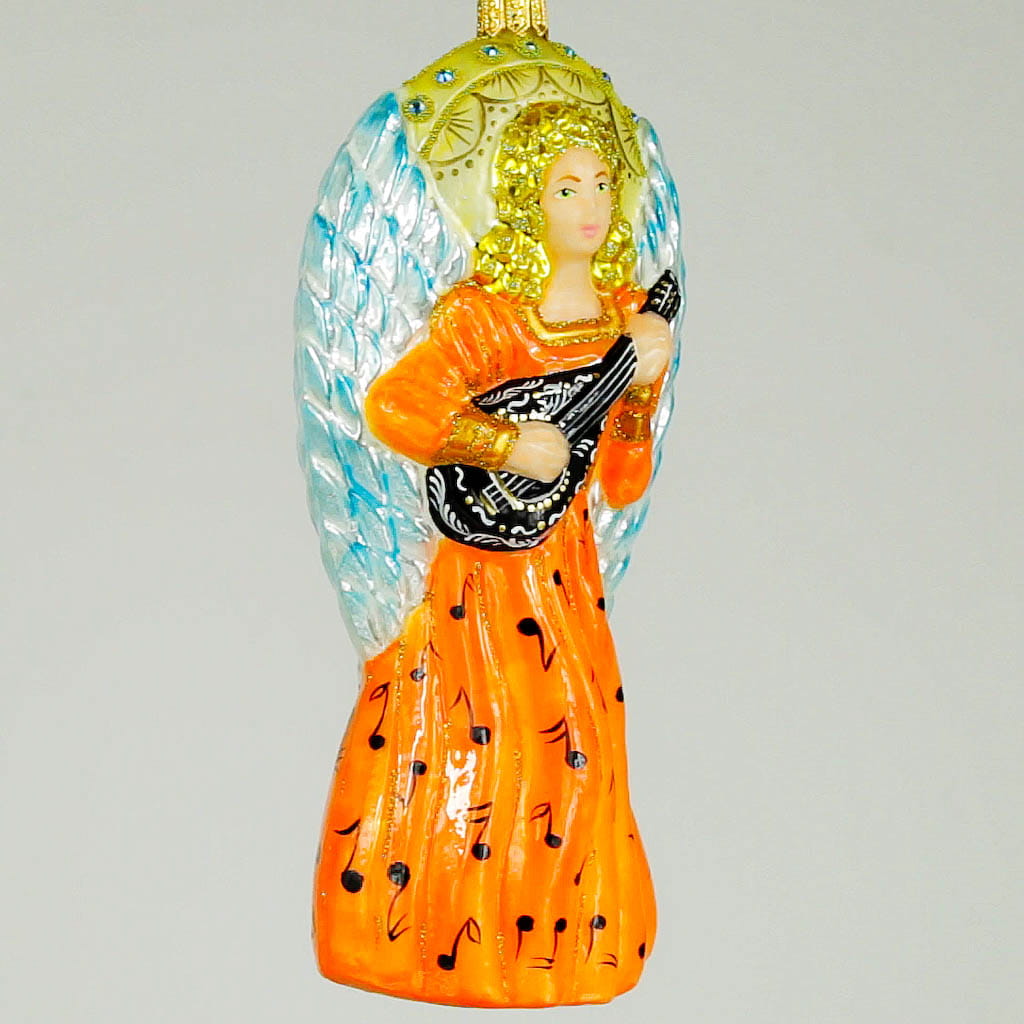 Anioł z mandoliną bombka choinkowa szklana ręcznie malowana 16 cm