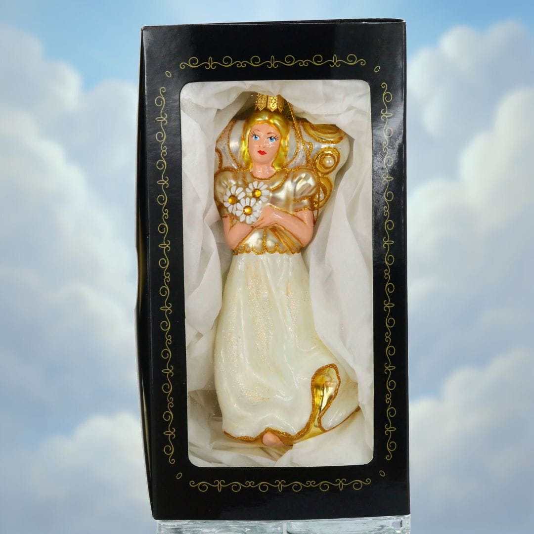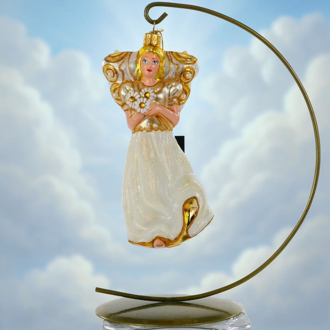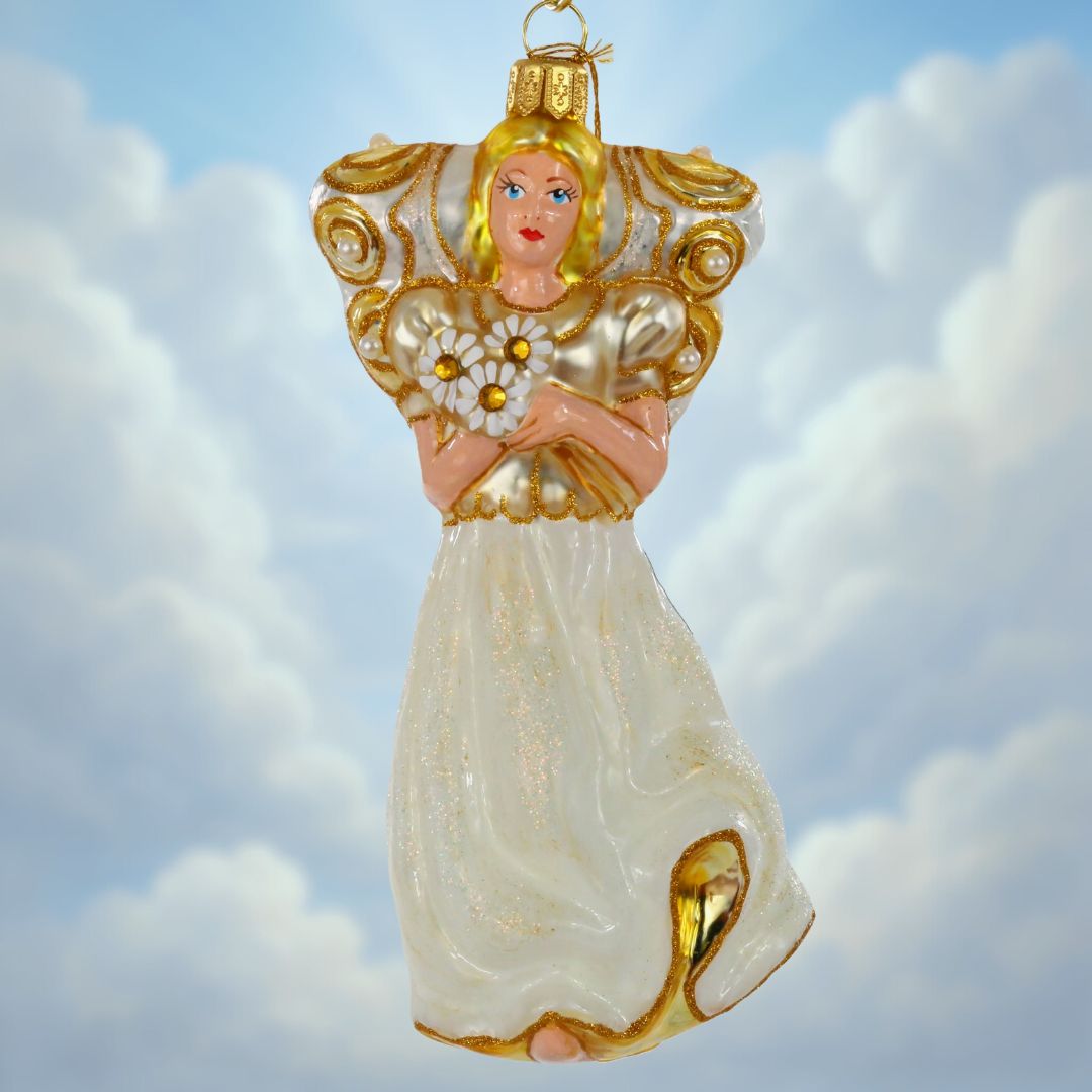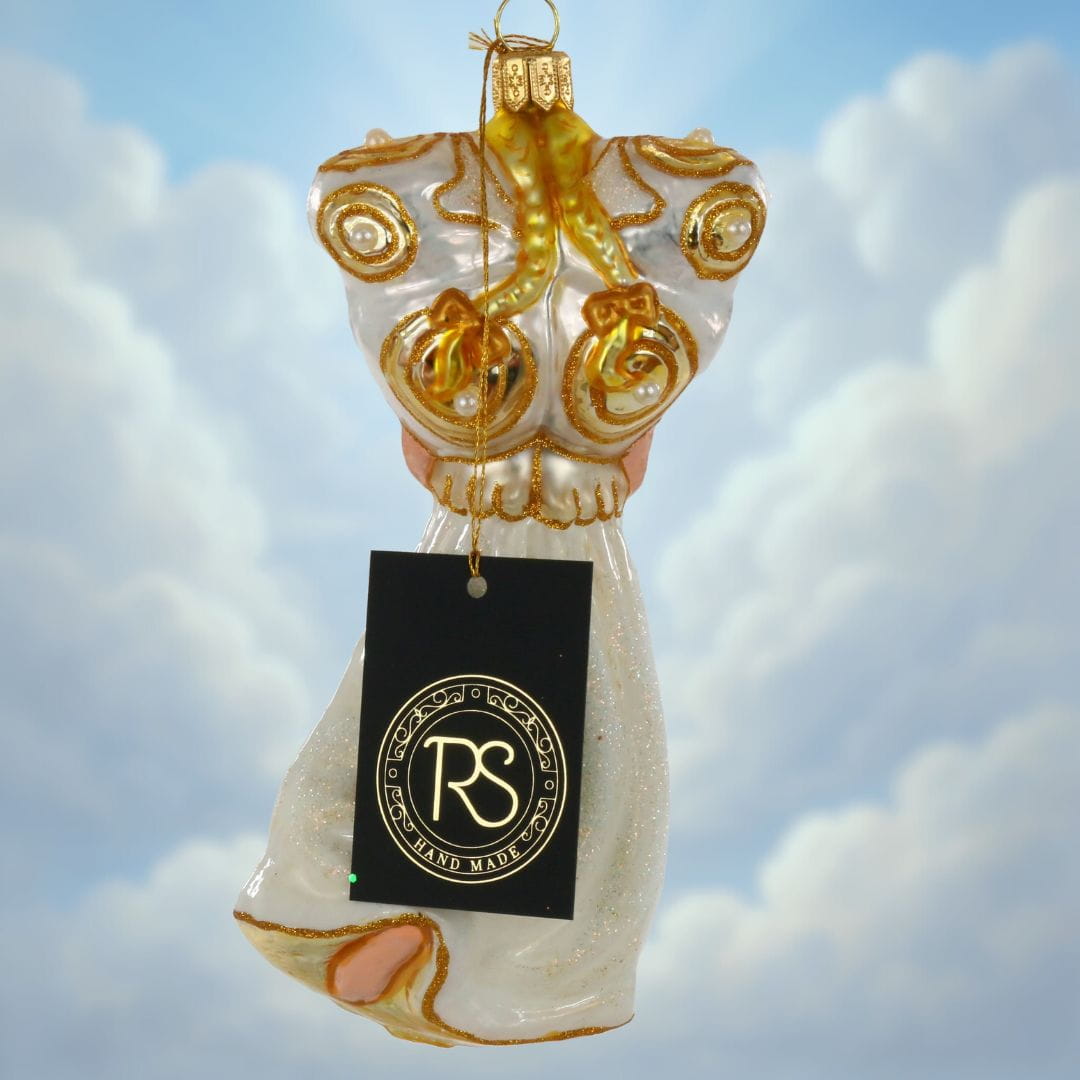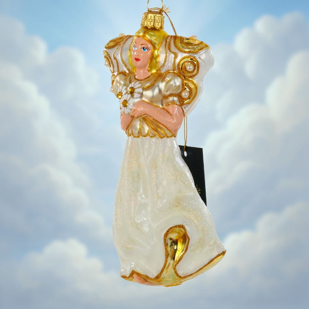 Kolekcja wiszących szklanych bombek inspirowana postaciami aniołów. Bombki przedstawiają anioły w różnych formach. Znajdują się tu anioły z instrumentami muzycznymi, anioł bizantyjski, anioł dobrobytu czy anioł nadziei. Wszystkie bombki anioły są wykonane z dmuchanego szkła i dekorowane przez polskich artystów w naszej pracowni RS Handmade. Ręczne zdobienie sprawia, że każdy anioł jest niepowtarzalny i wyjątkowy w swoim wyrazie.