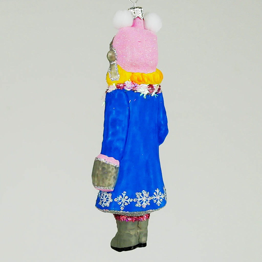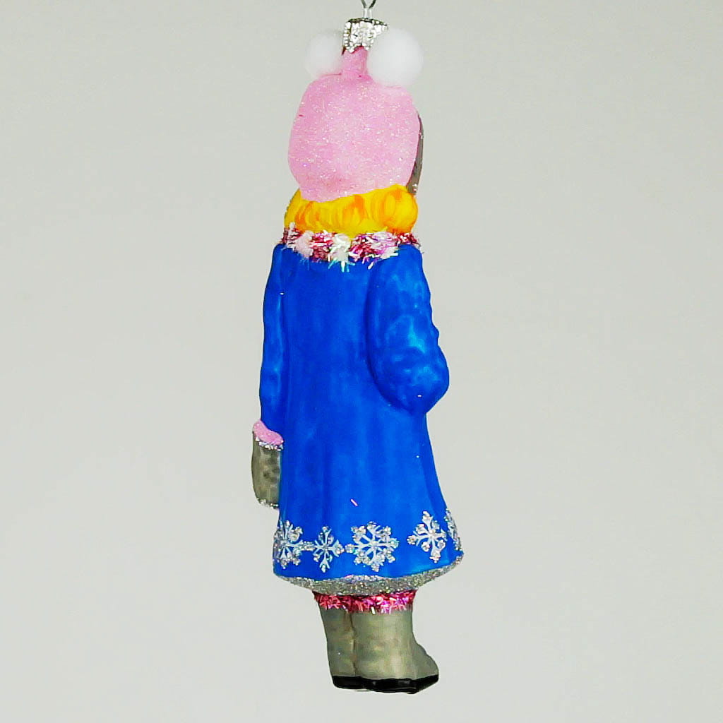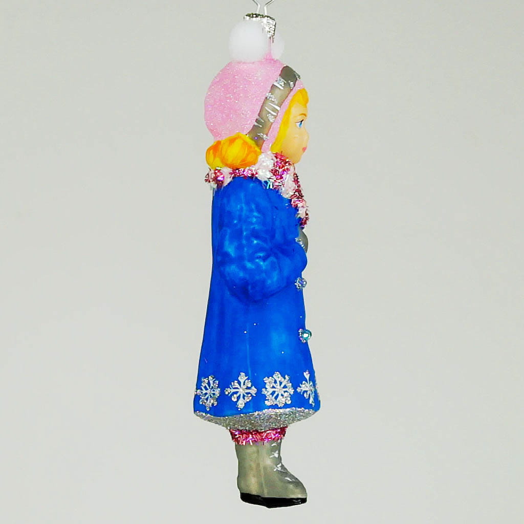 Dziewczynka w niebieskim płaszczyku bombka choinkowa szklana ręcznie malowana 13 cm