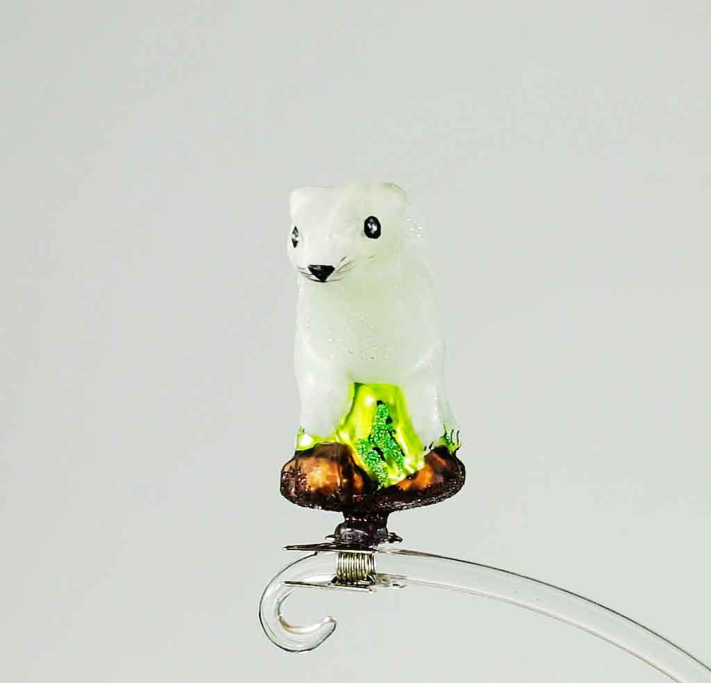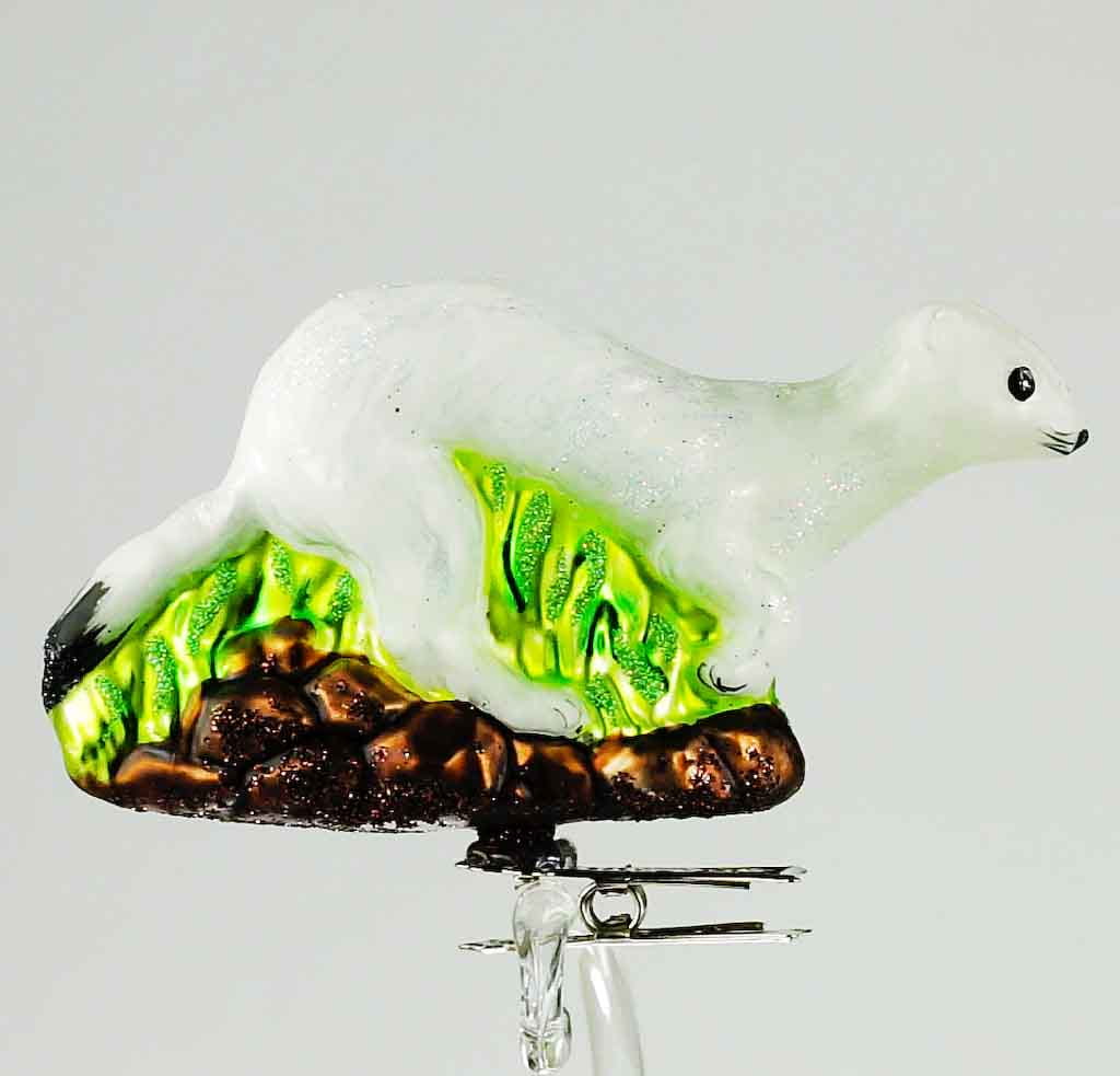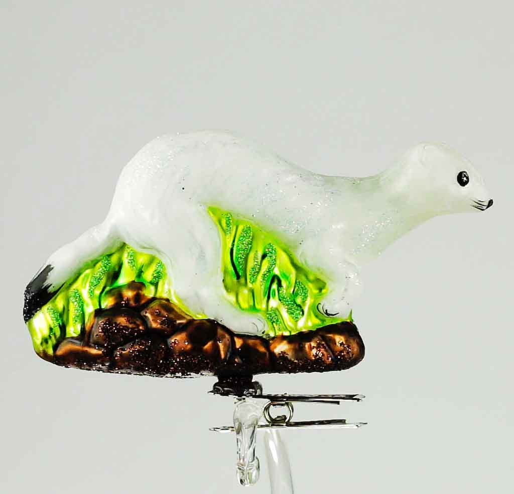 Gronostaj bombka choinkowa szklana ręcznie malowana na klipsie 11 cm