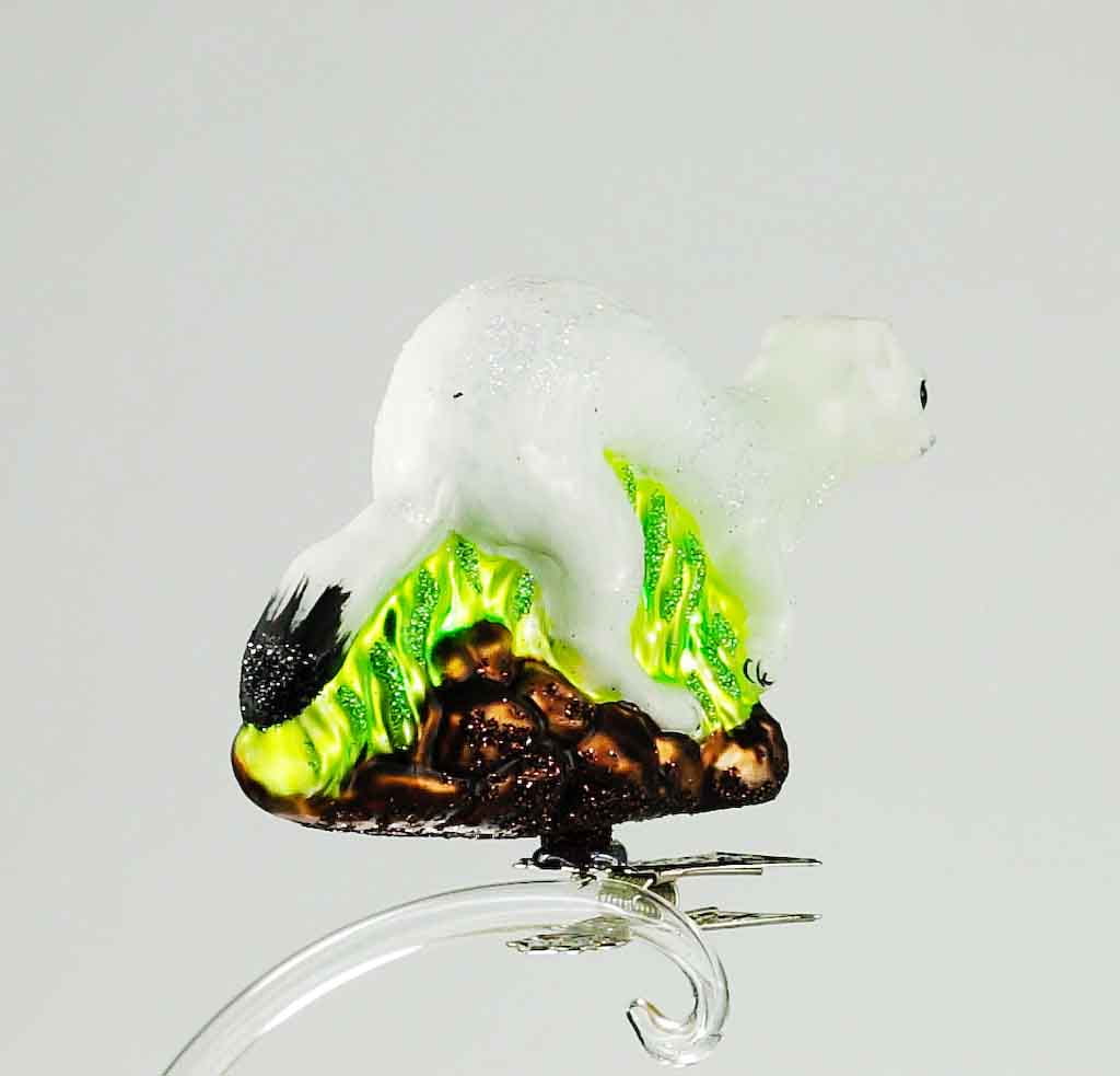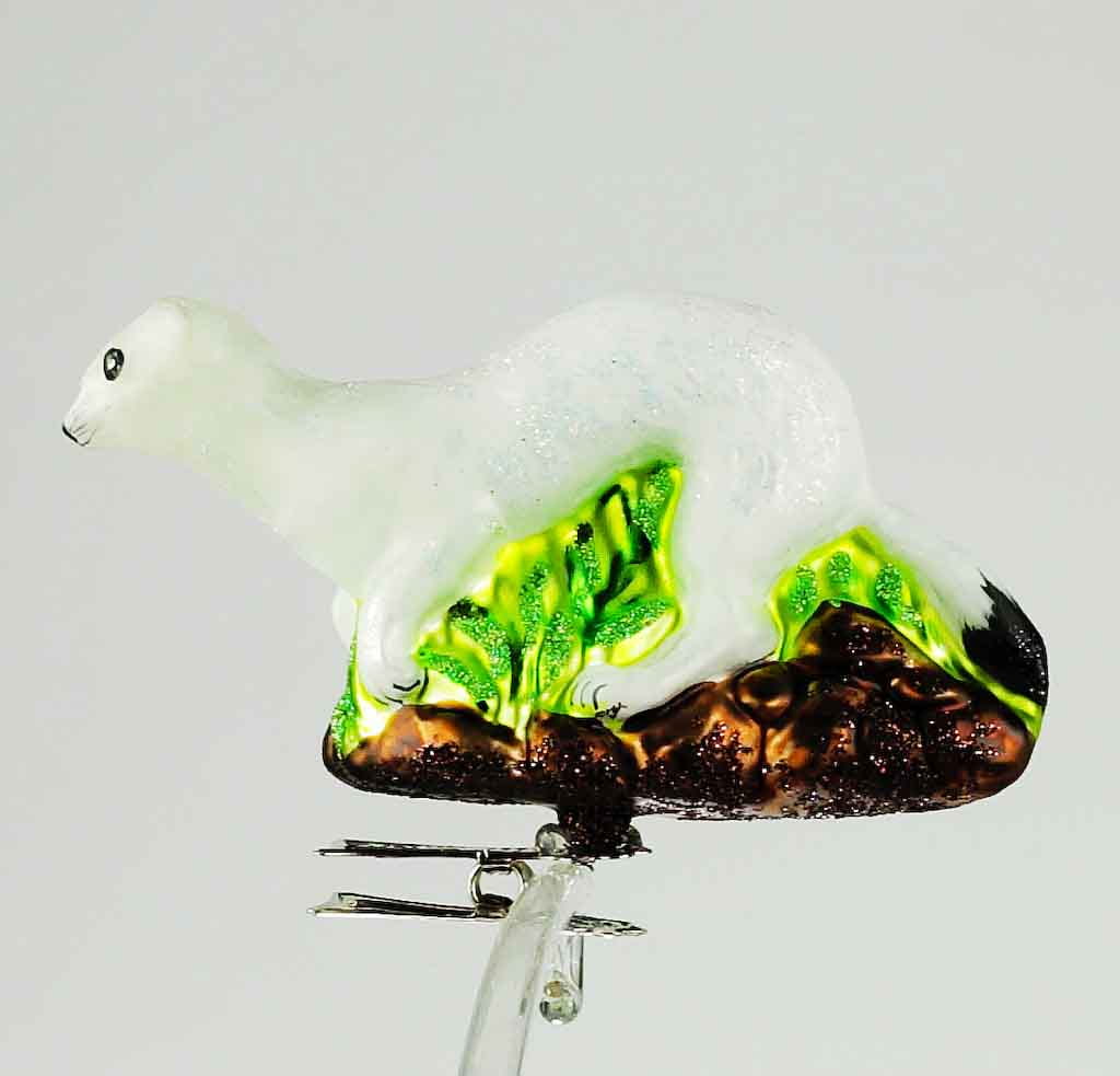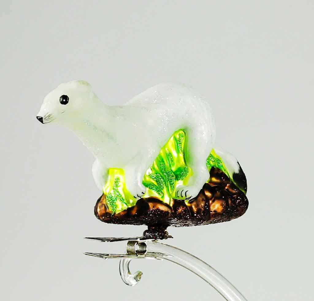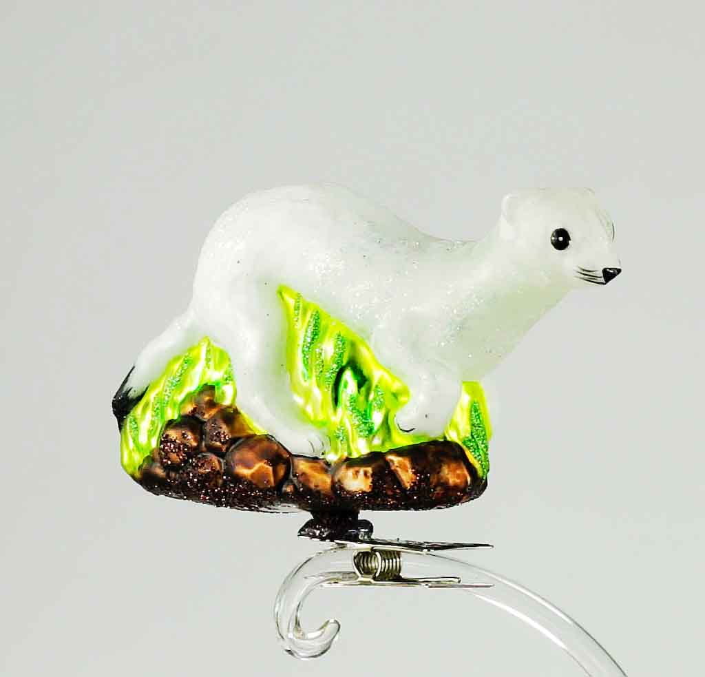 Gronostaj bombka choinkowa szklana ręcznie malowana na klipsie 11 cm