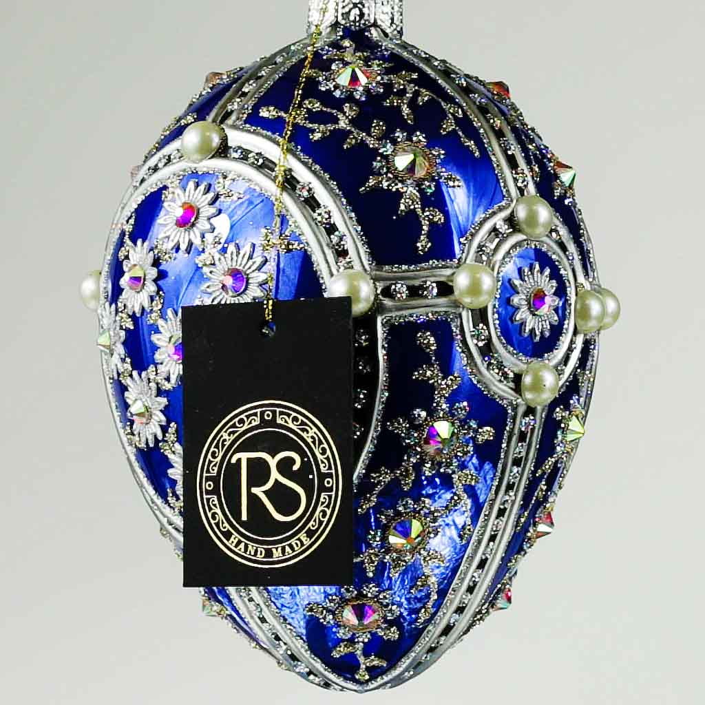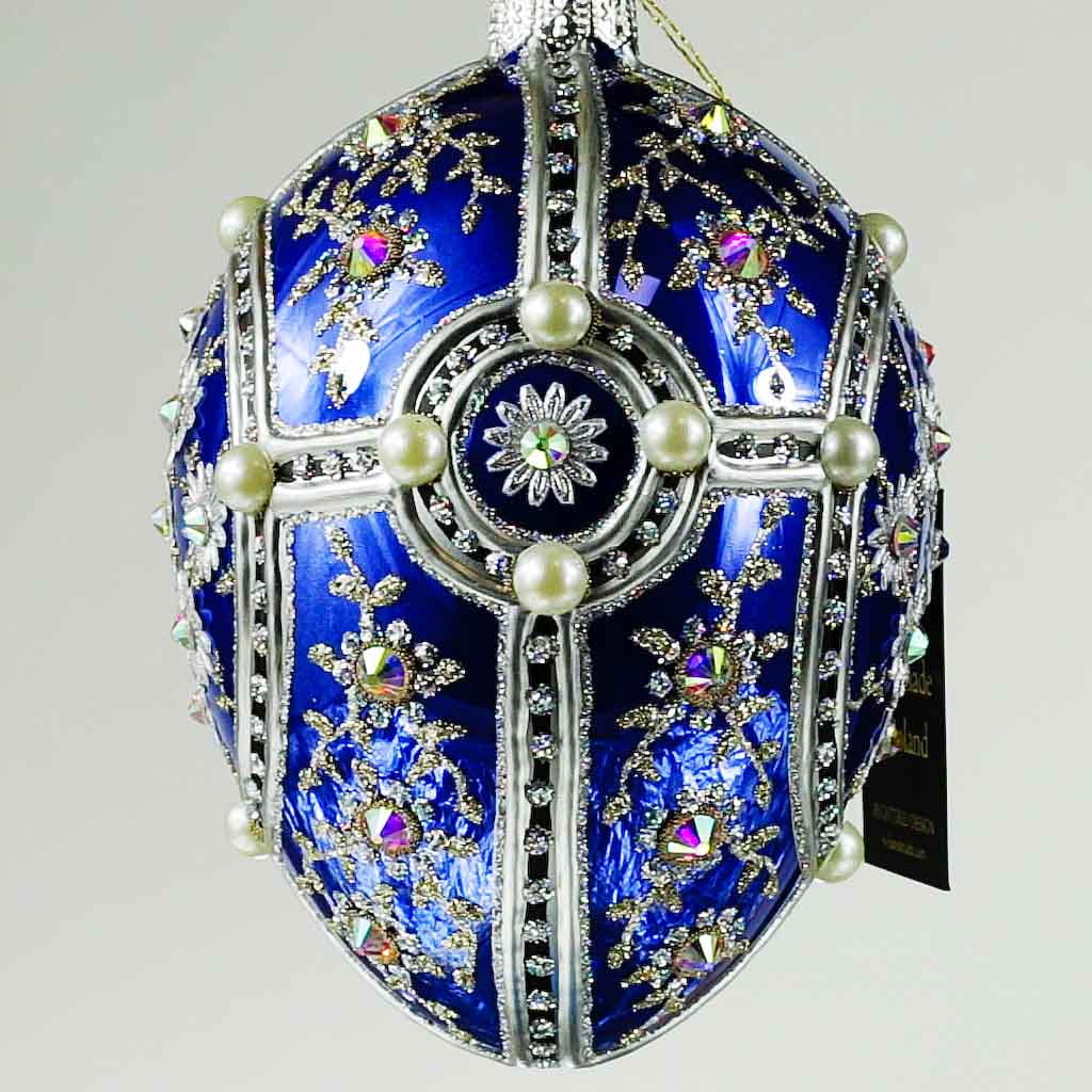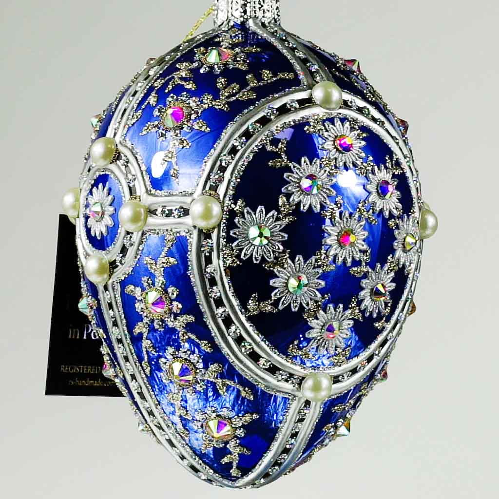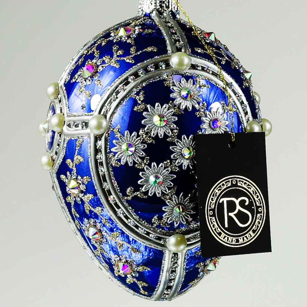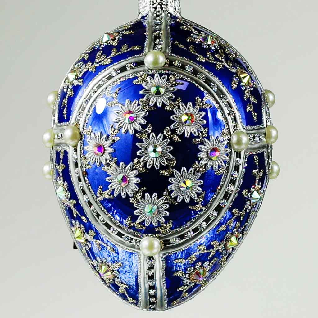 Jajo w stylu Faberge Niebieska Emalia ozdoba szklana ręcznie malowana 12 cm