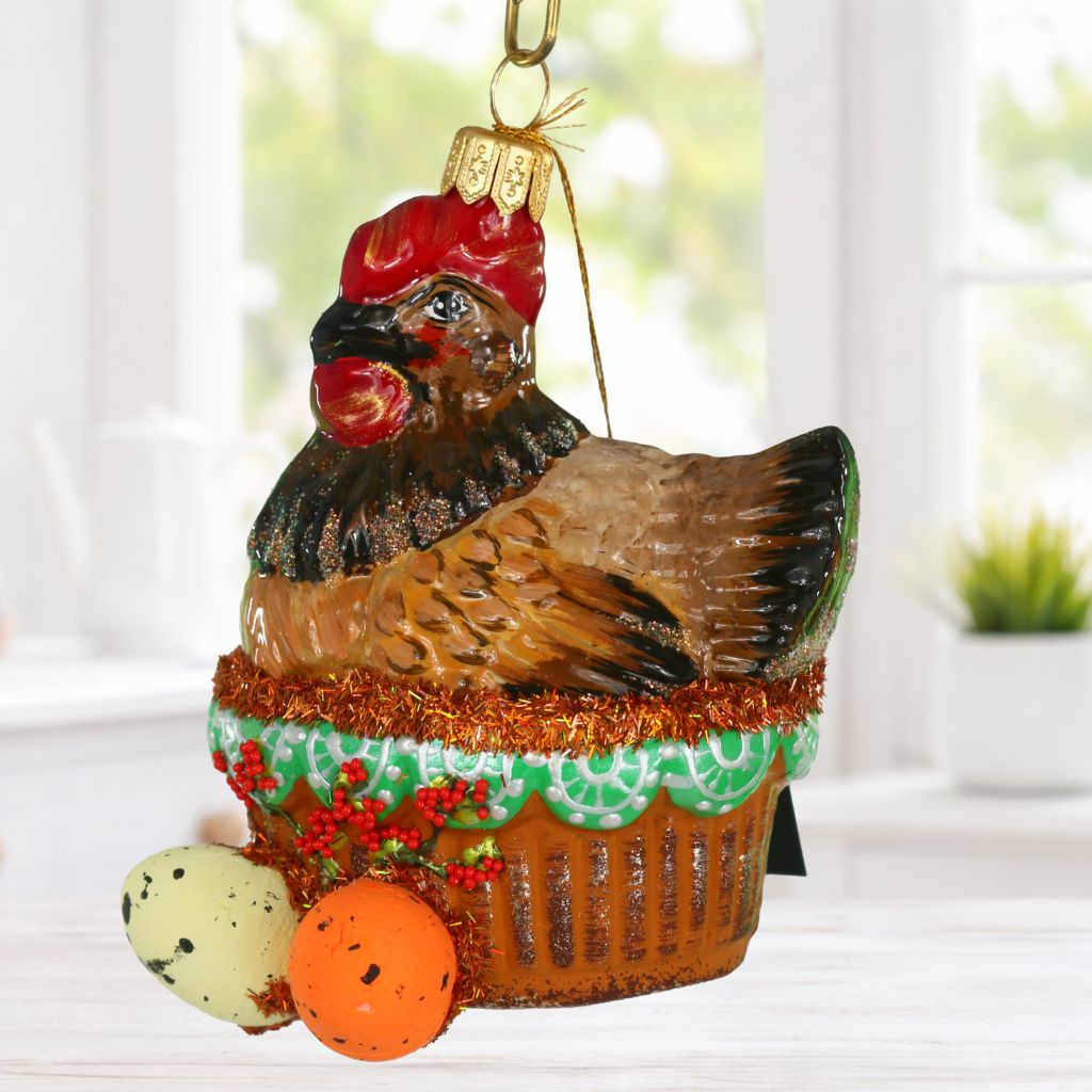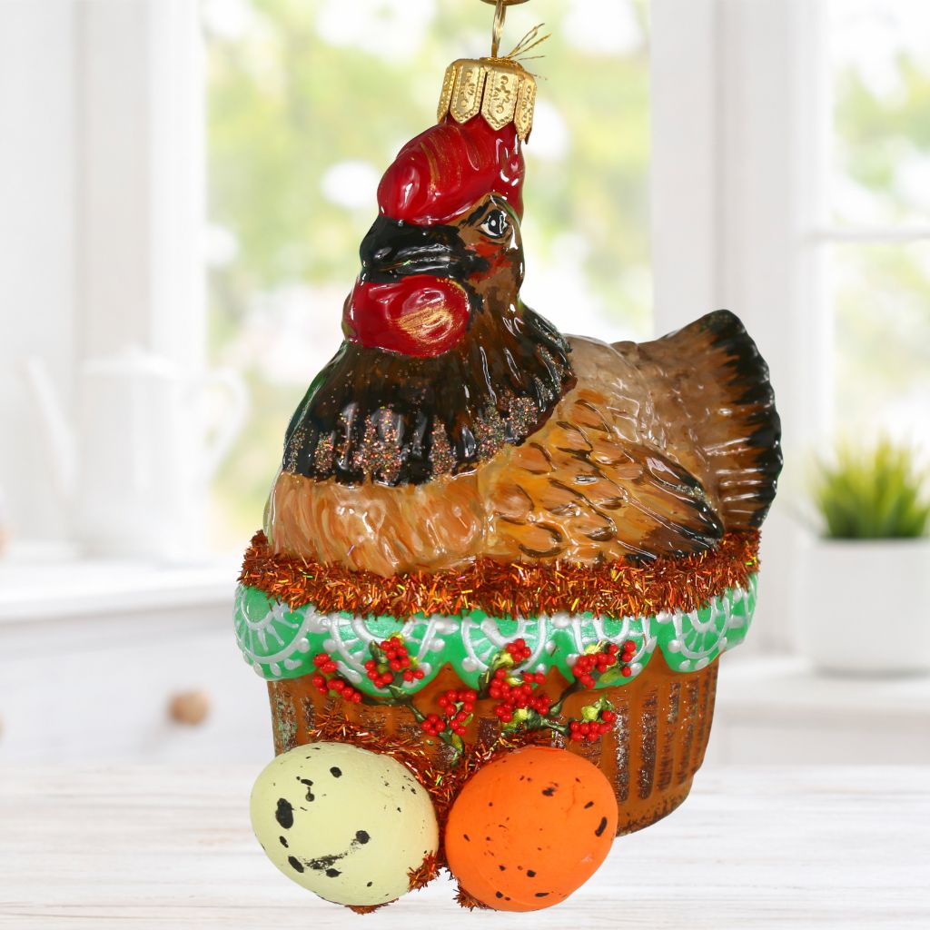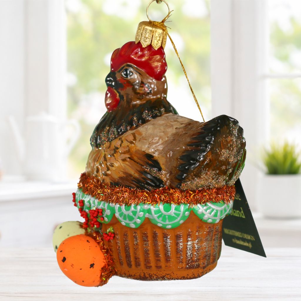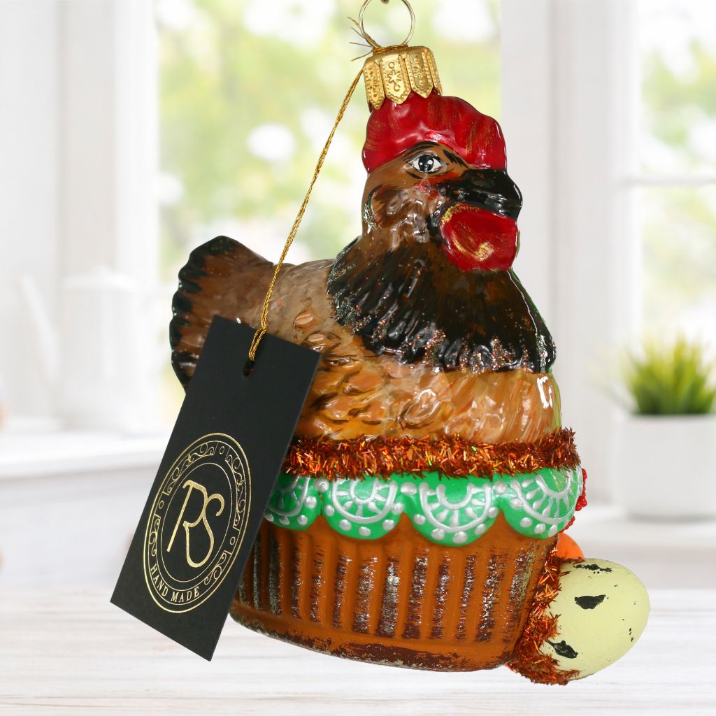 Kura wielkanocna brązowa, bombka szklana ręcznie malowana 10 cm