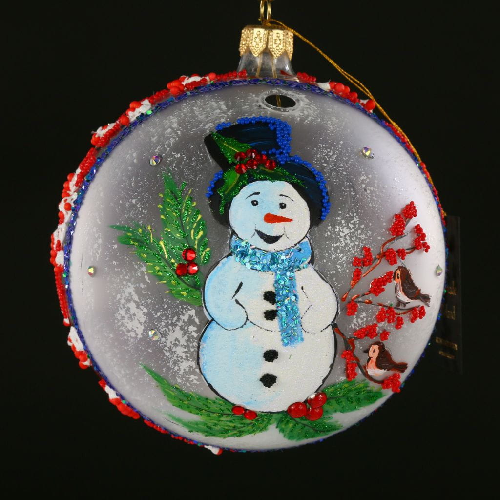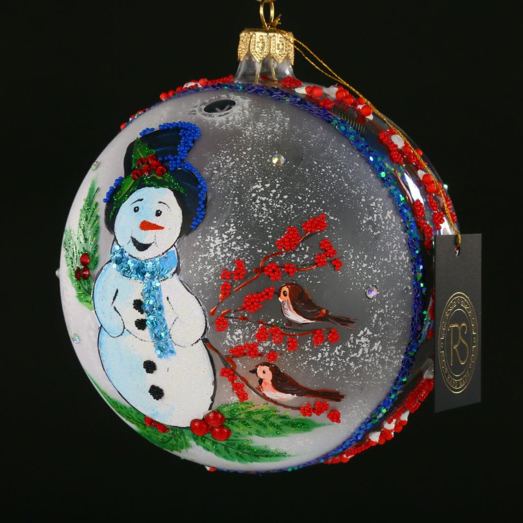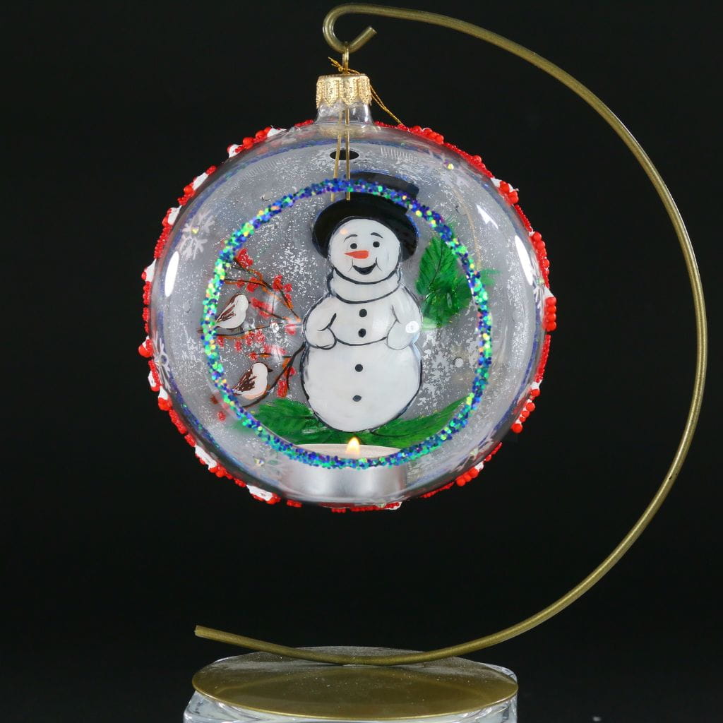 Lampion bałwanek, bombka choinkowa szklana ręcznie malowana 12 cm