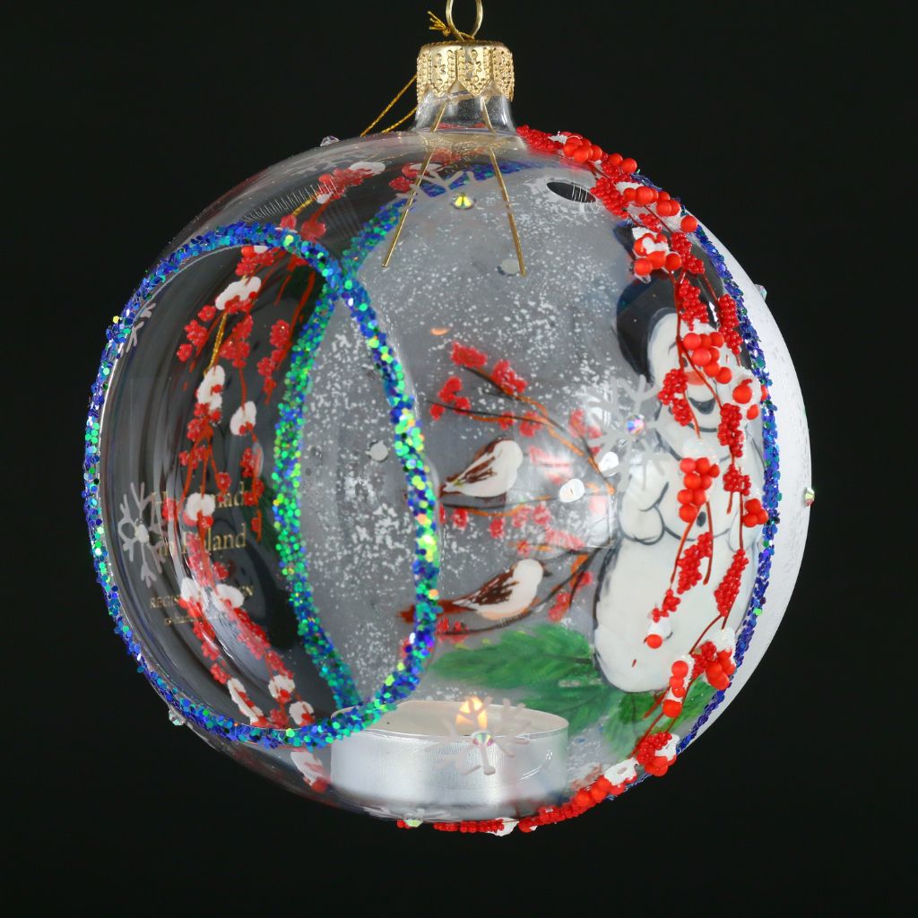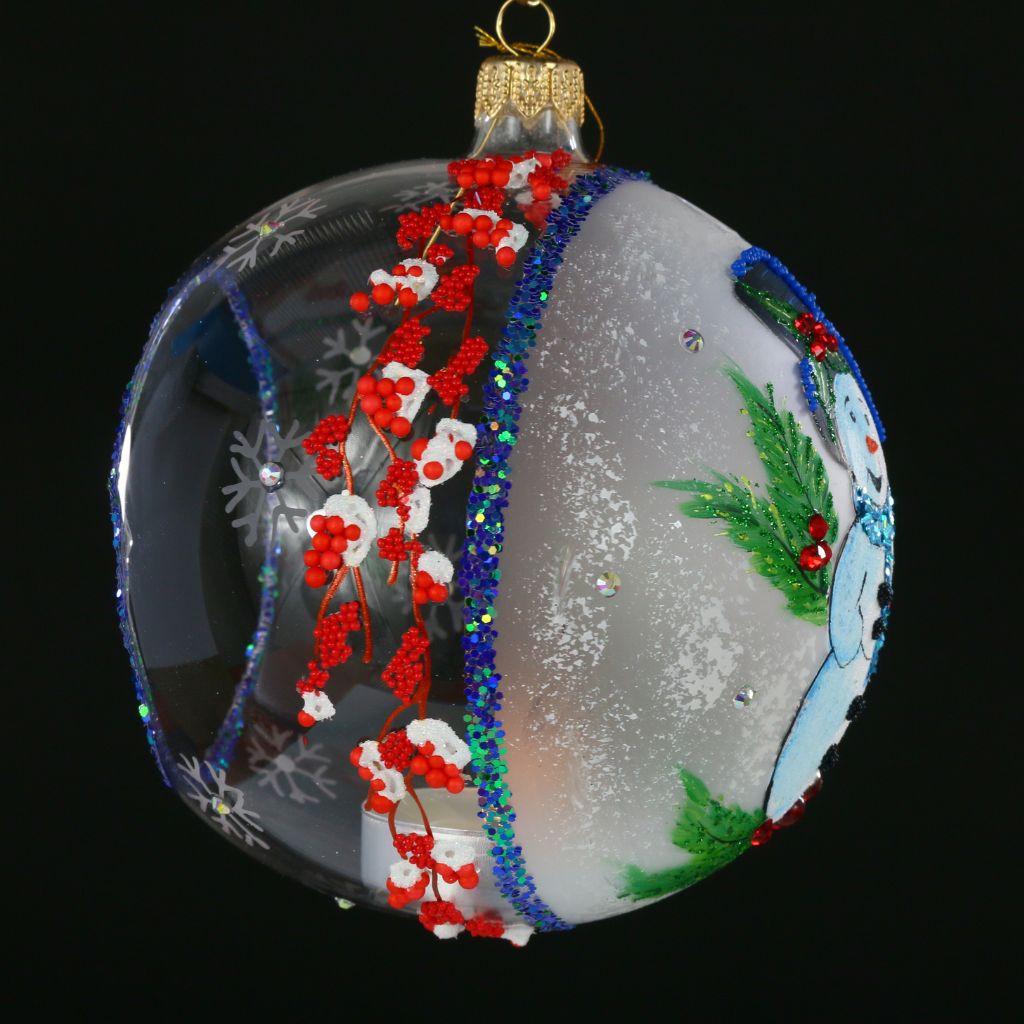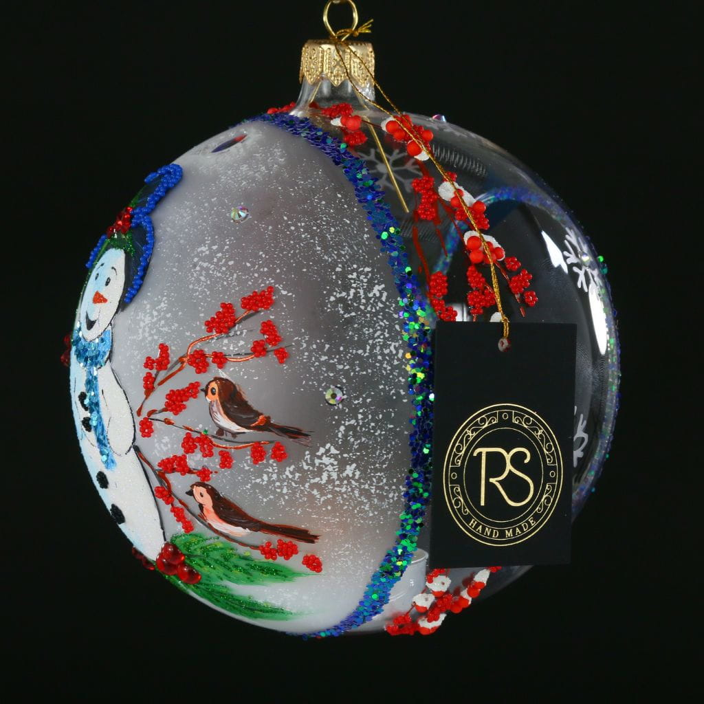 Lampion bałwanek, bombka choinkowa szklana ręcznie malowana 12 cm