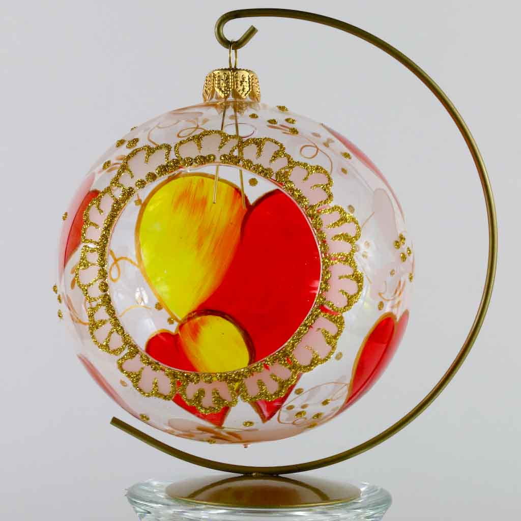 Lampion szklany całoroczny 10 cm Serduszka Ombre