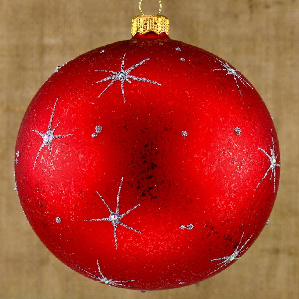 Każda szklana bombka jest bezpiecznie zapakowana w ozdobne czarno-złote pudełko z przezroczystym wieczkiem, które pełni funkcję prezentową.