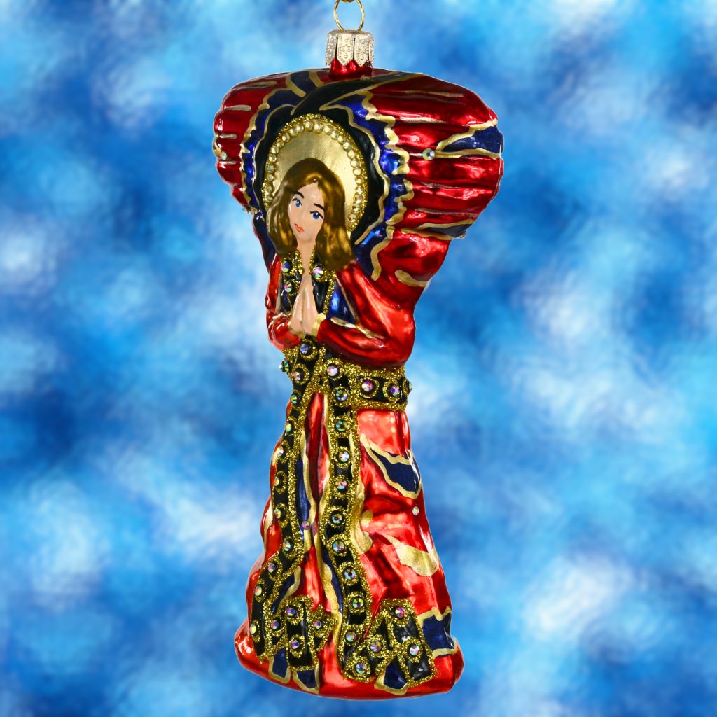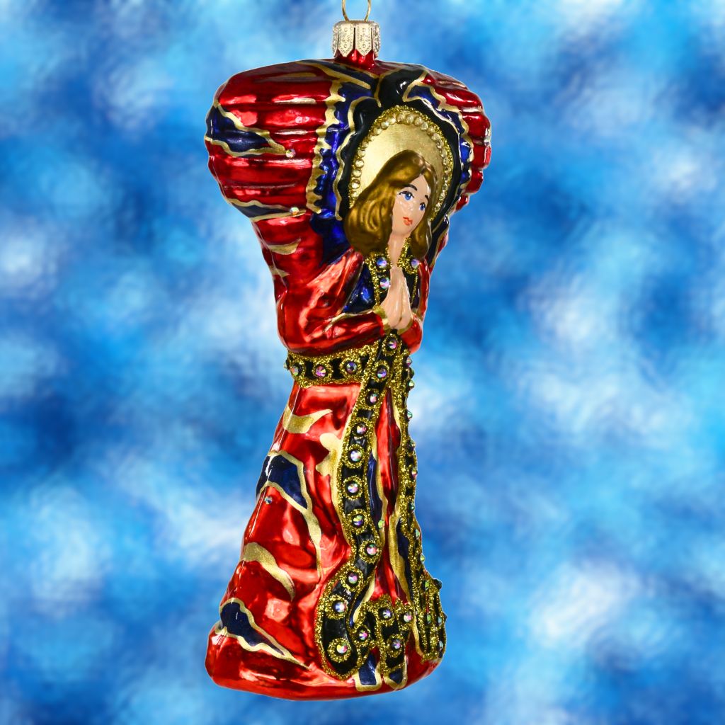 Bombka szklana figurka ręcznie dekorowana. Anioł w stylu twórczości Mehoffera.