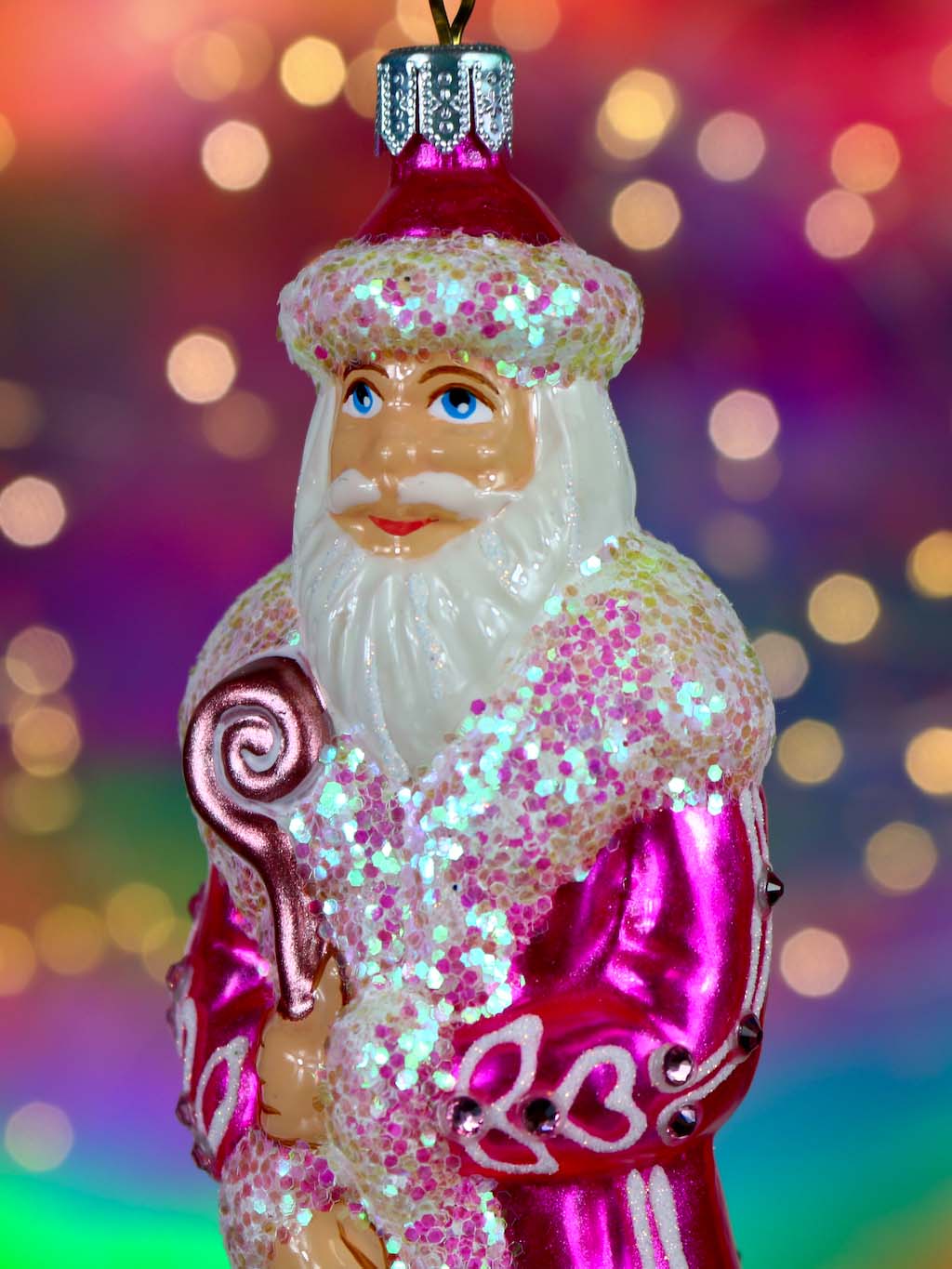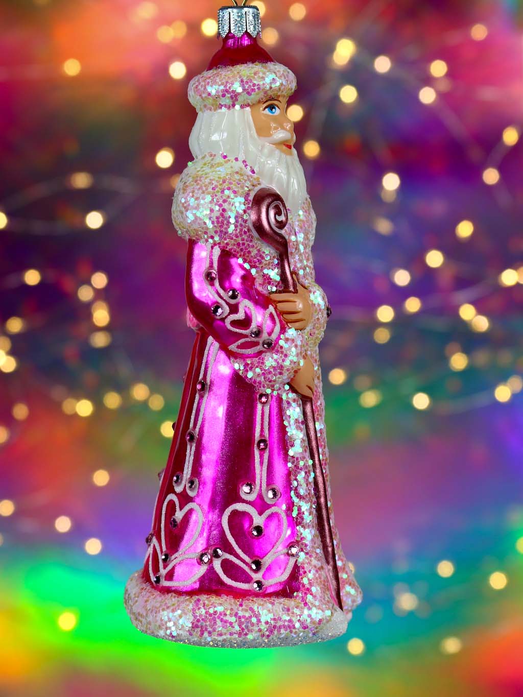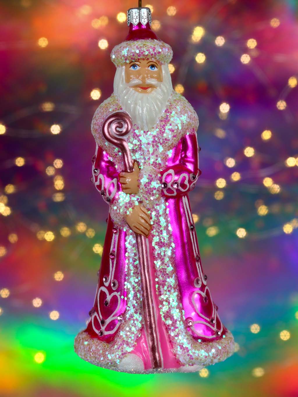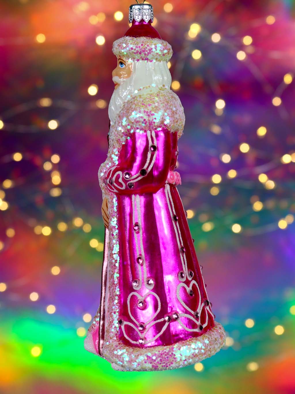 Mikołaj w różowym płaszczu bombka szklana ręcznie malowana 15 cm