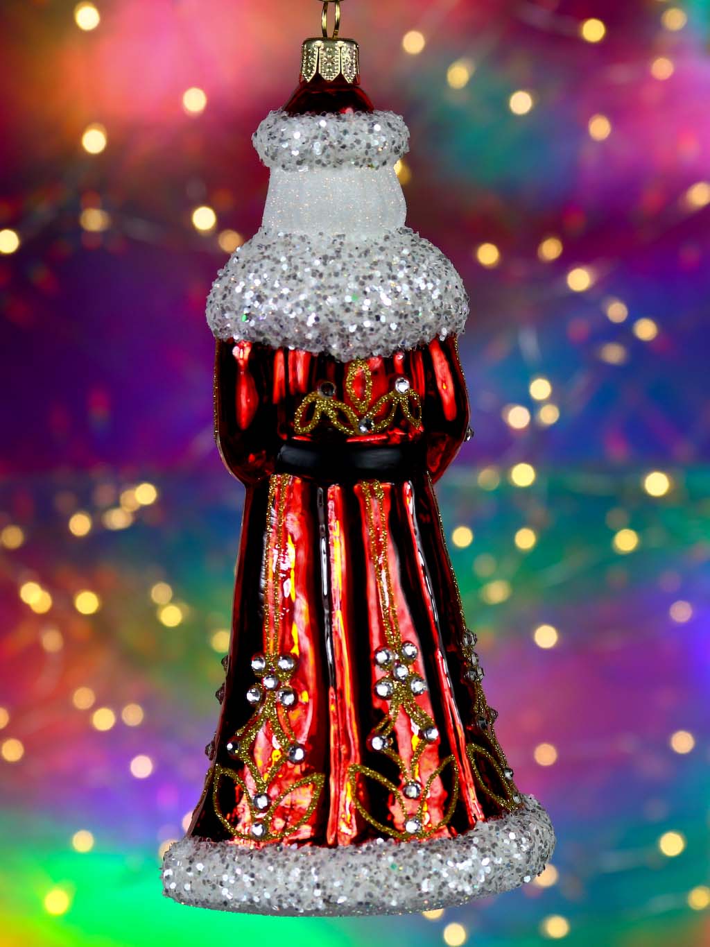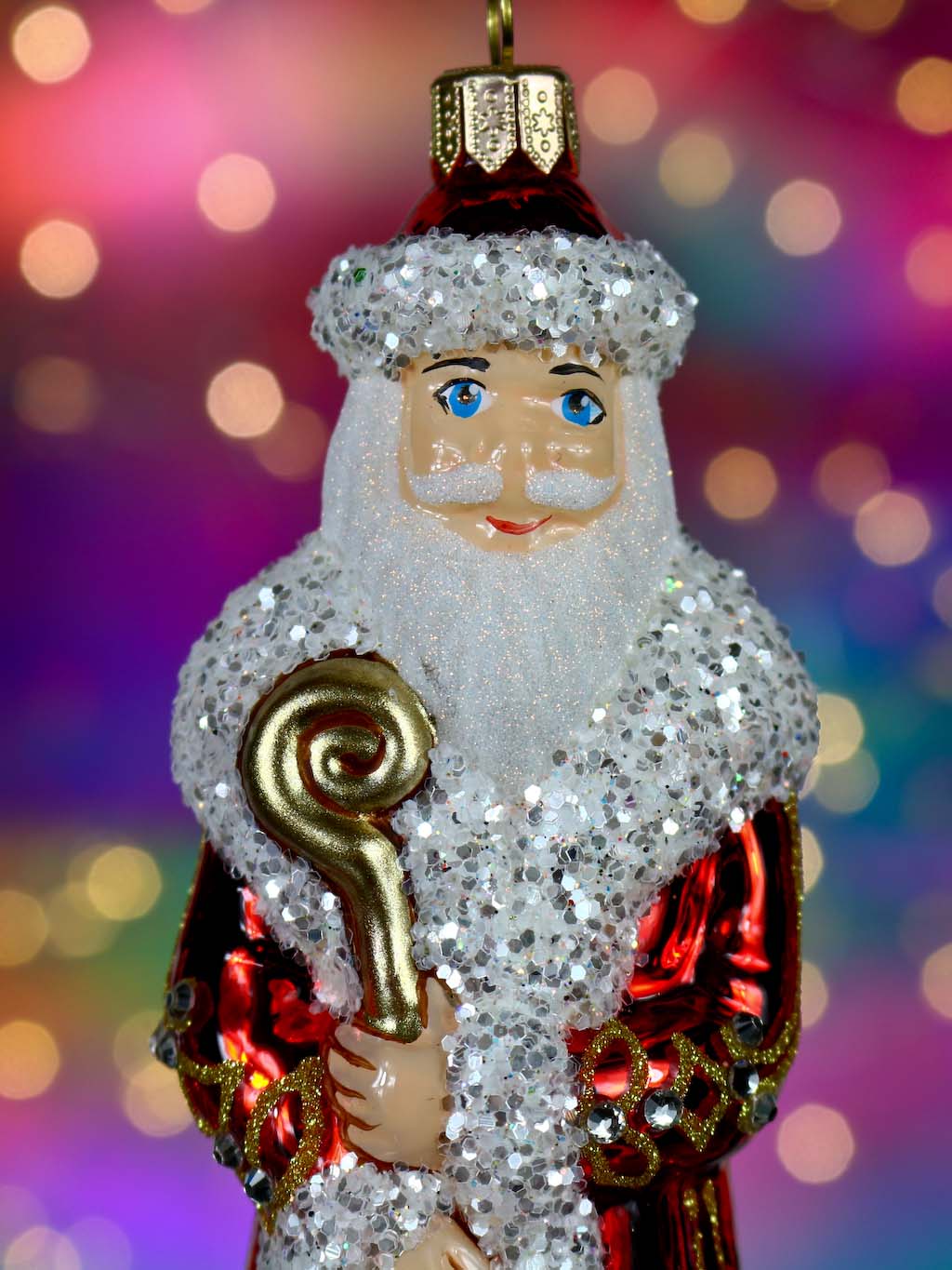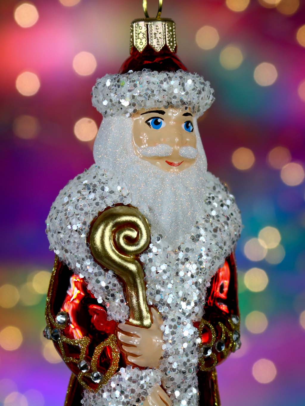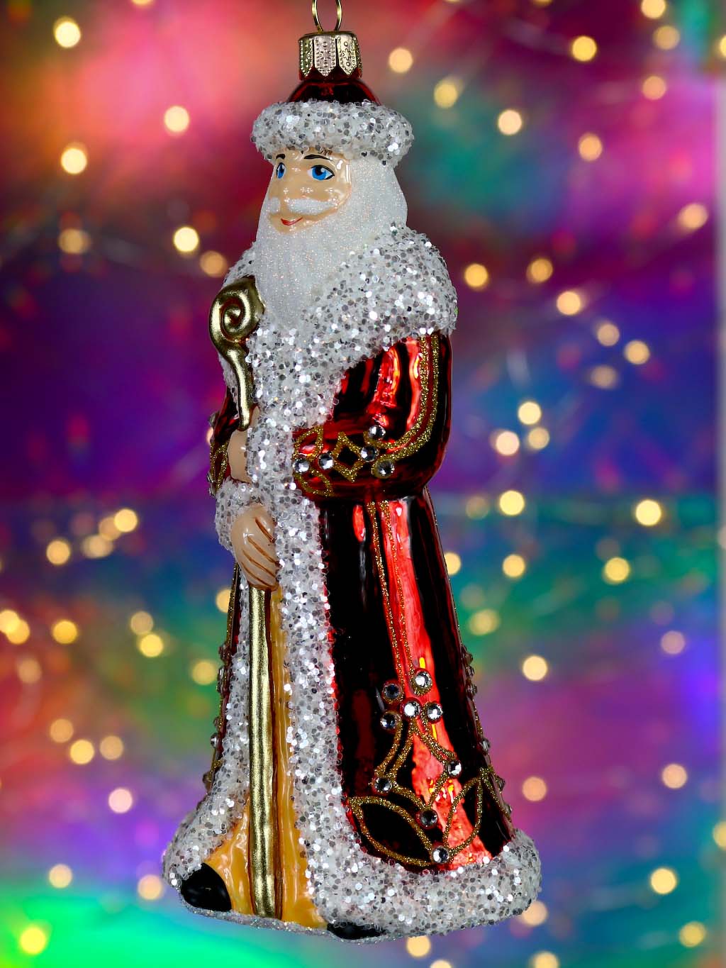 Mikołaj w śnieżnym płaszczu bombka szklana ręcznie malowana 15 cm