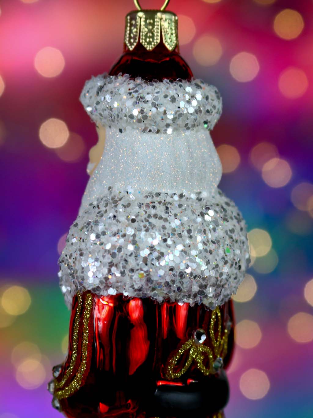Duża bombka Mikołaj szklana ręcznie malowana, wykonana z dmuchanego szkła.