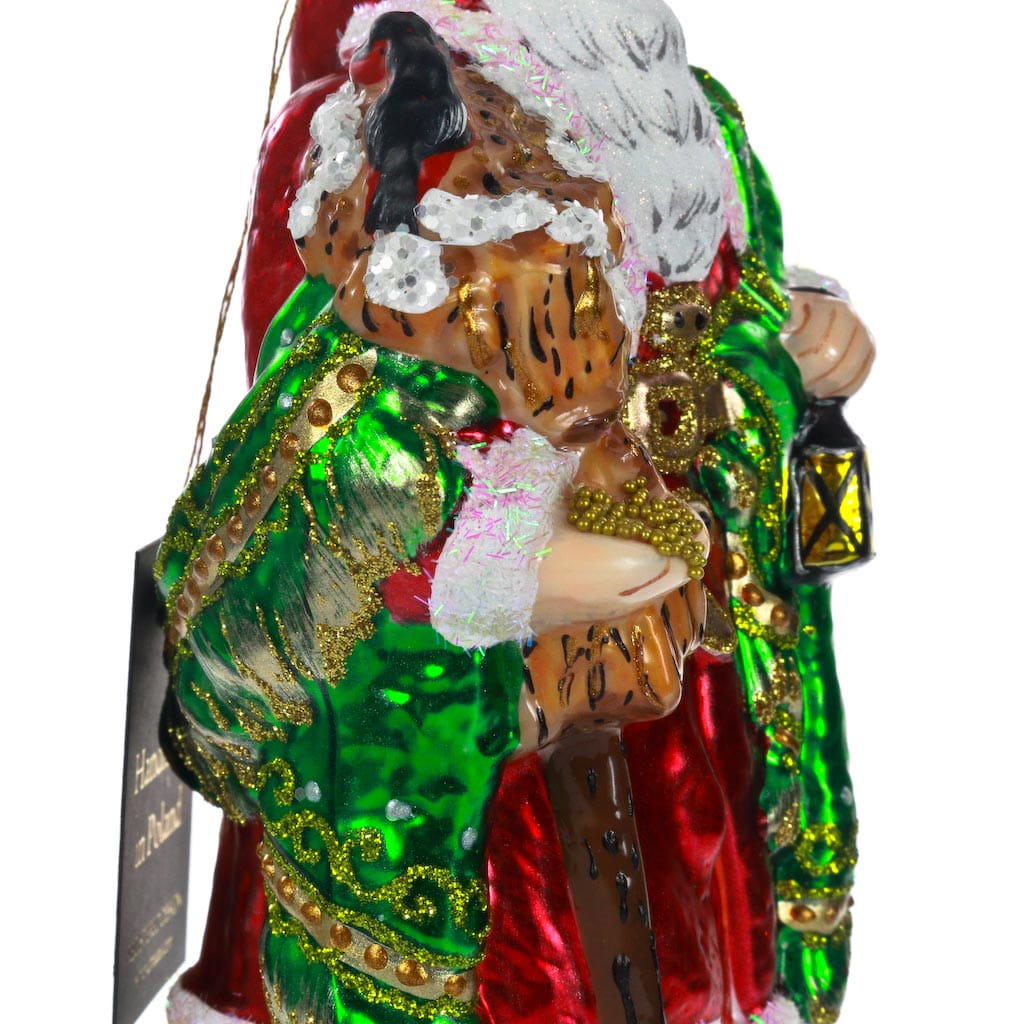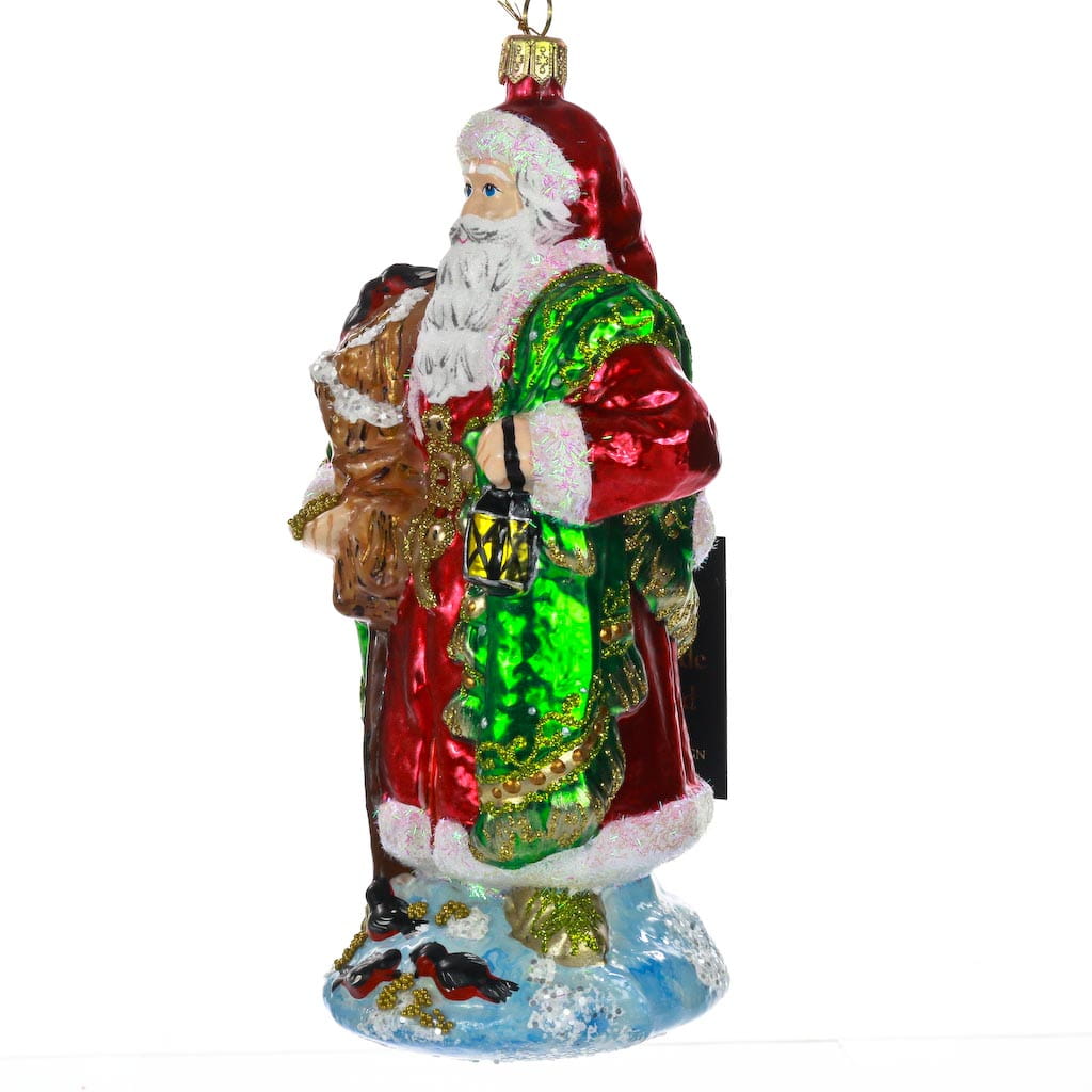 Mikołaj z gilami ręcznie malowana bombka choinkowa szklana 15 cm
