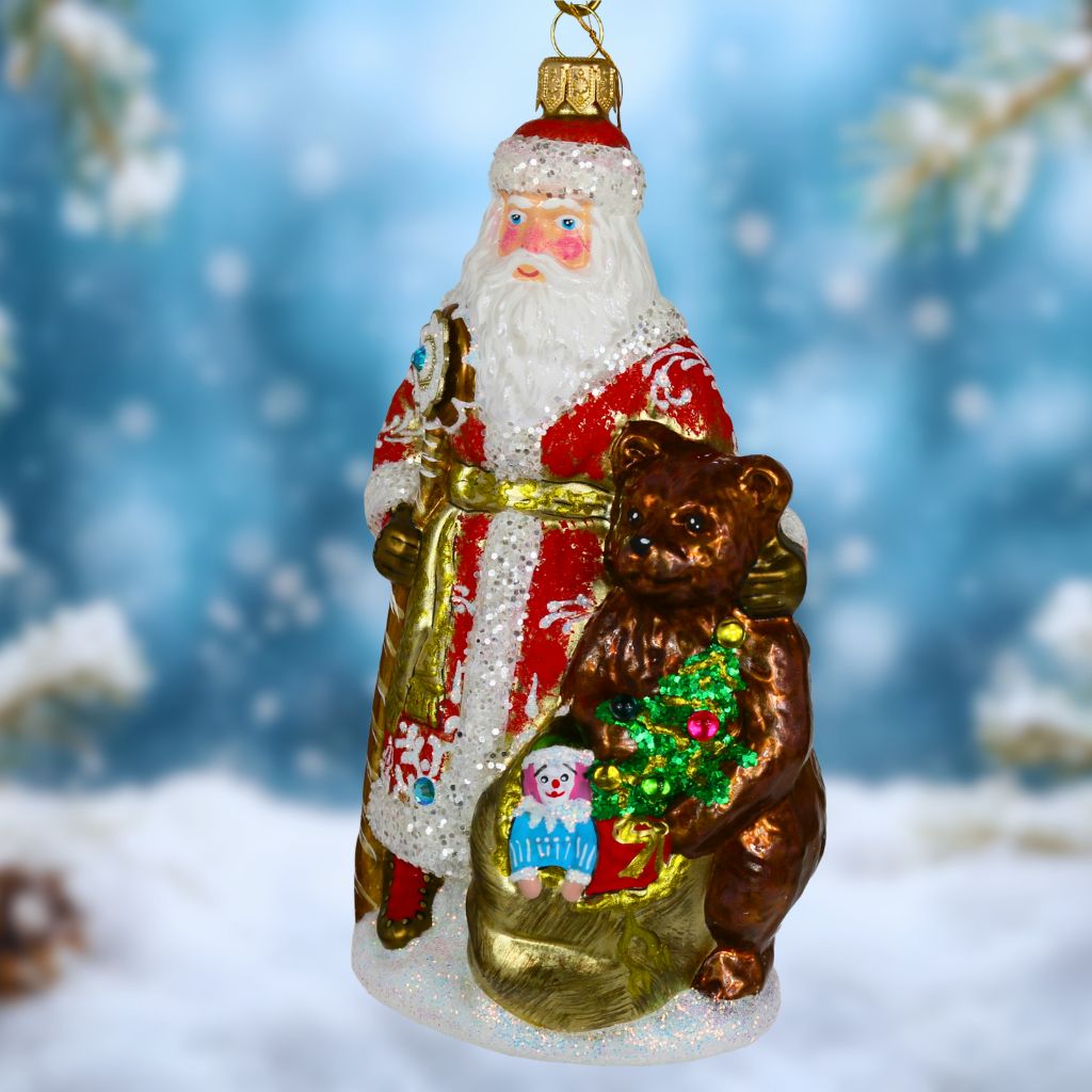 Duża bombka Mikołaj szklana ręcznie malowana, wykonana z dmuchanego szkła.