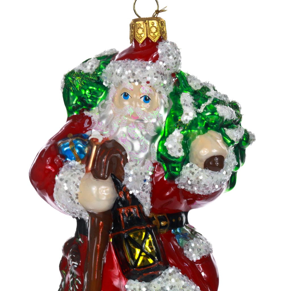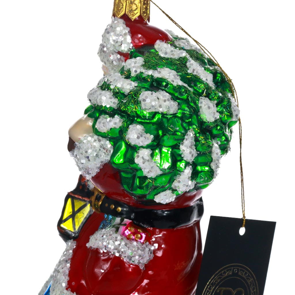 Mikołaj z latarnią bombka choinkowa szklana ręcznie malowana 15 cm