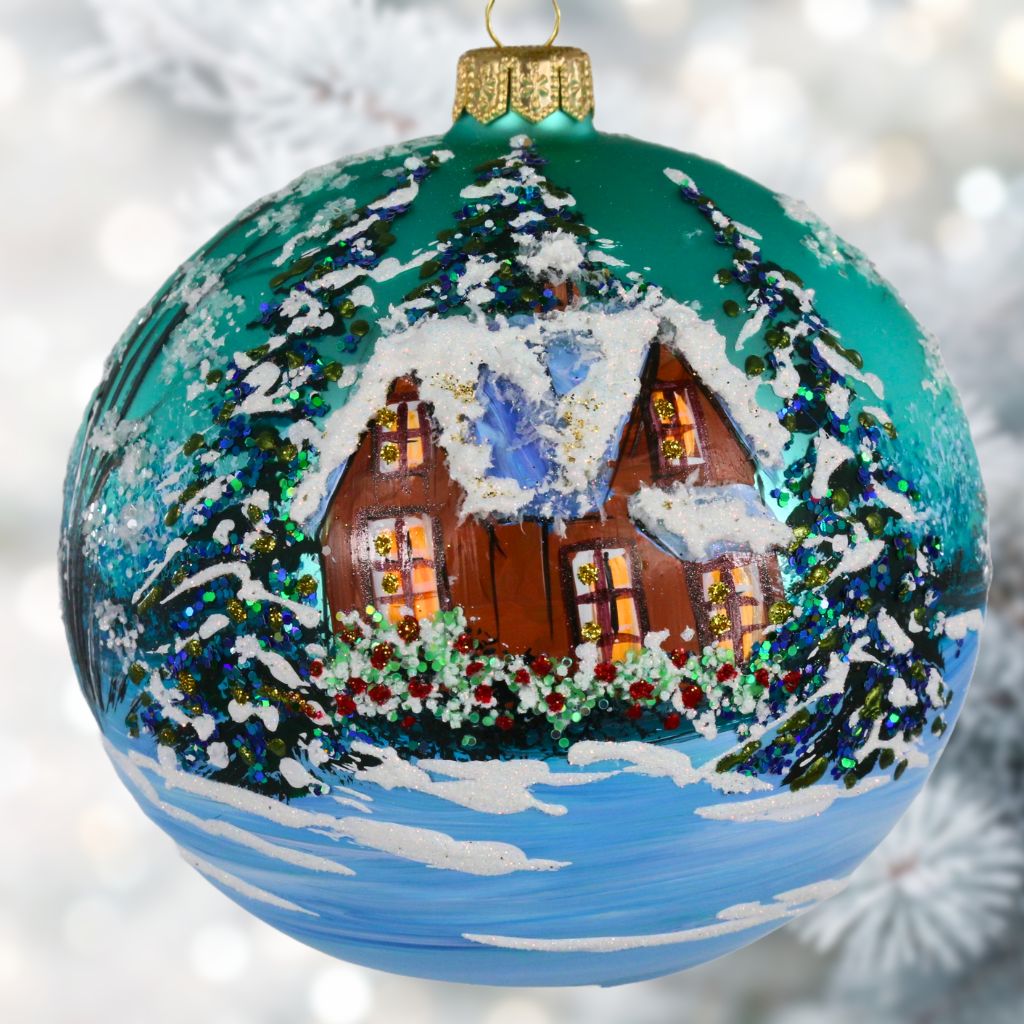 Pejzaż 12 cm Drewniany domek bombka szklana ręcznie malowana