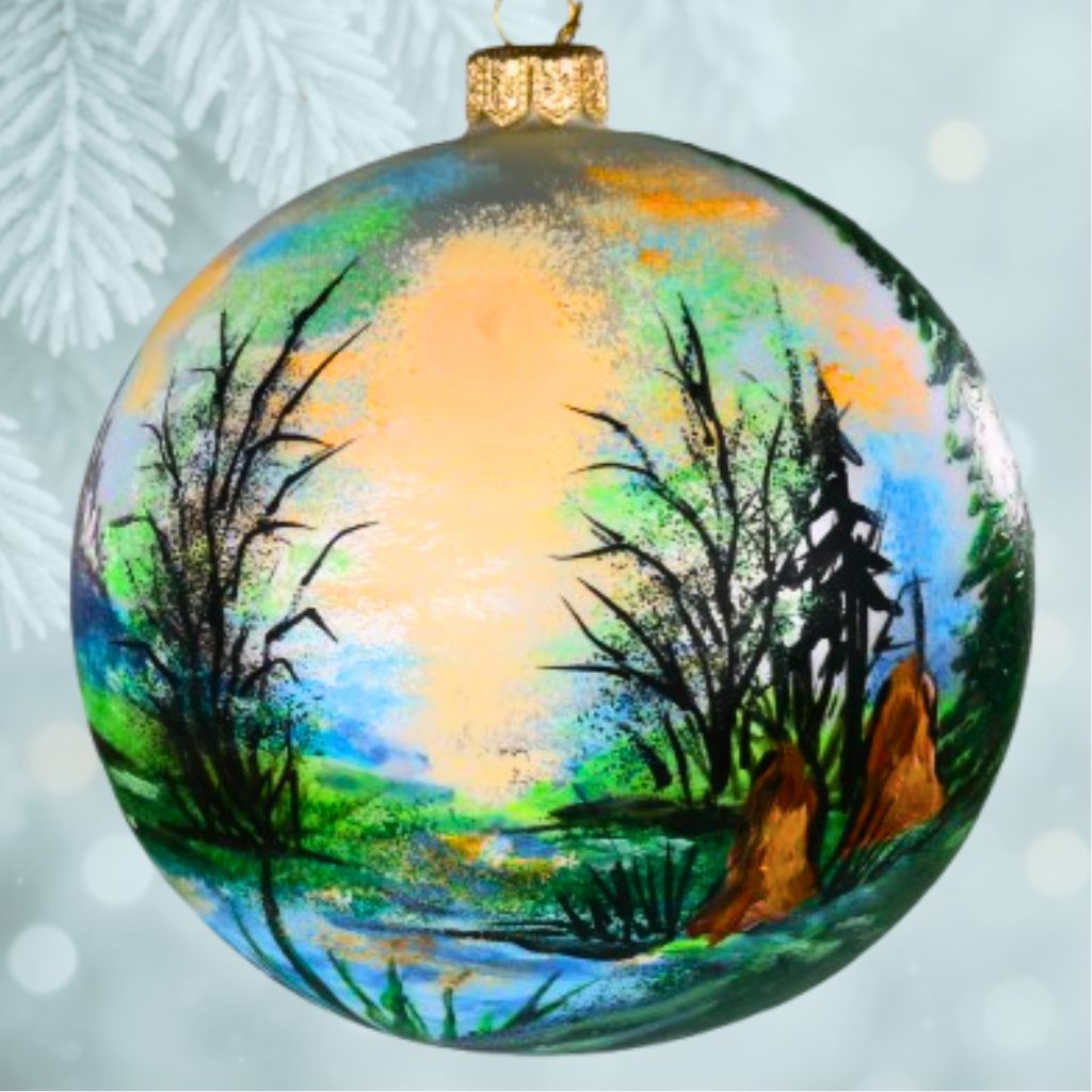 Pejzaż Lato, bombka choinkowa ręcznie malowana szklana 12 cm