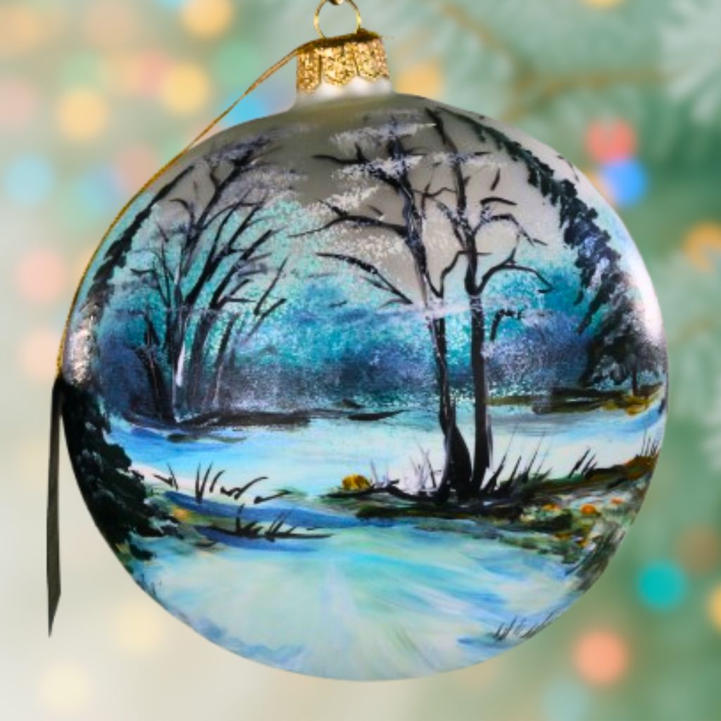 Pejzaż Wiosna, bombka choinkowa ręcznie malowana szklana 12 cm