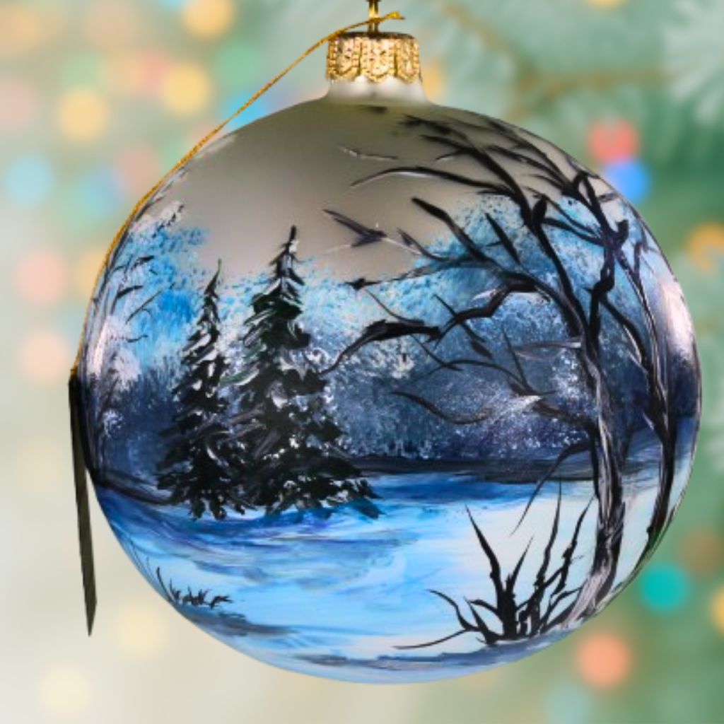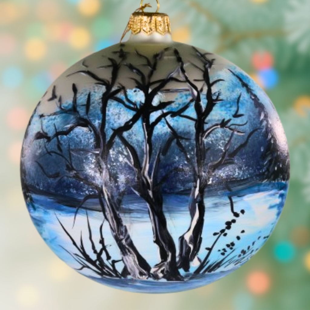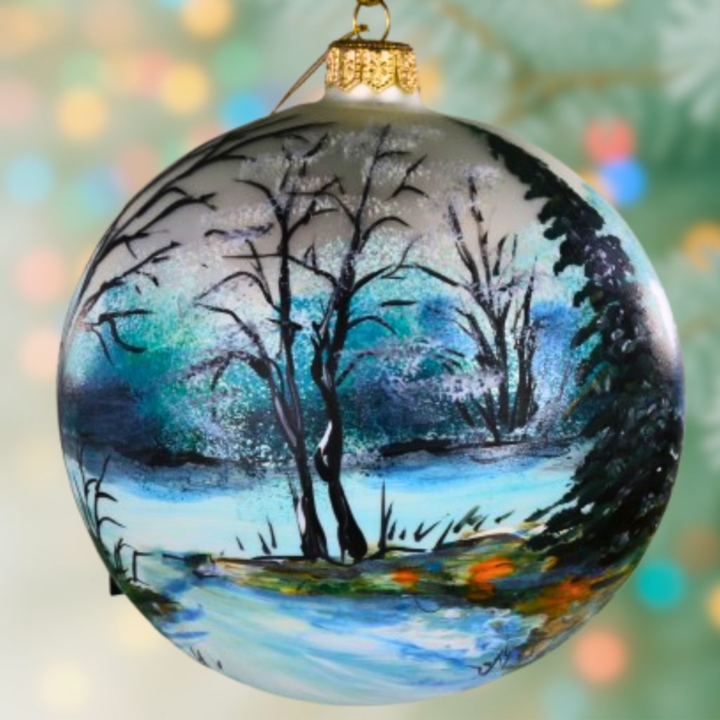 Pejzaż Zima, bombka choinkowa ręcznie malowana szklana 12 cm