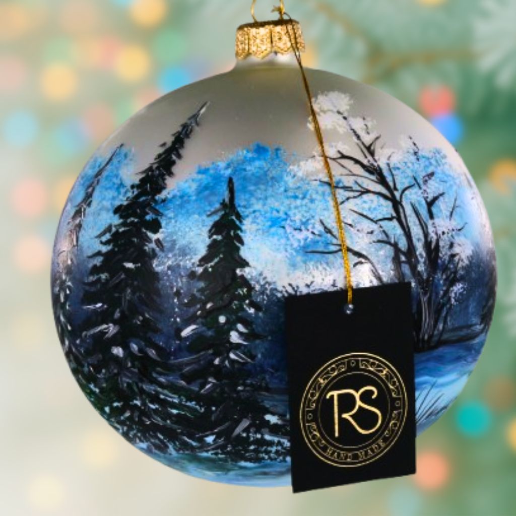 Każda bombka została wykonana z delikatnego szkła i ręcznie pomalowana w pracowni RS Handmade. Precyzyjnie oddane szczegóły oraz harmonijna kolorystyka nadają jej elegancji i ponadczasowego piękna.