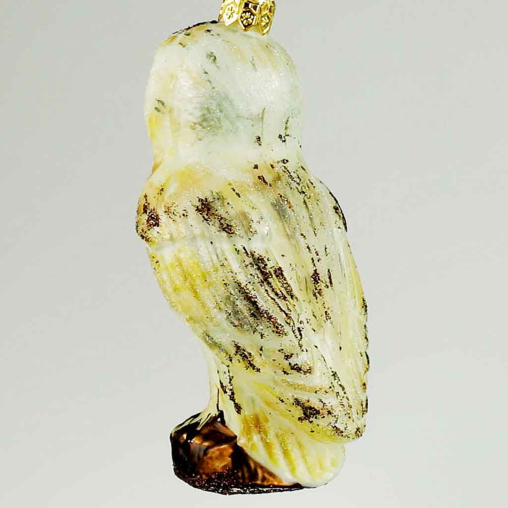 Bombka szklana figurka ręcznie dekorowana. Sowa płomykówka, dekoracja jest wykonana bardzo realistycznie a kształt jest bardzo podobny do naturalnej sowy.