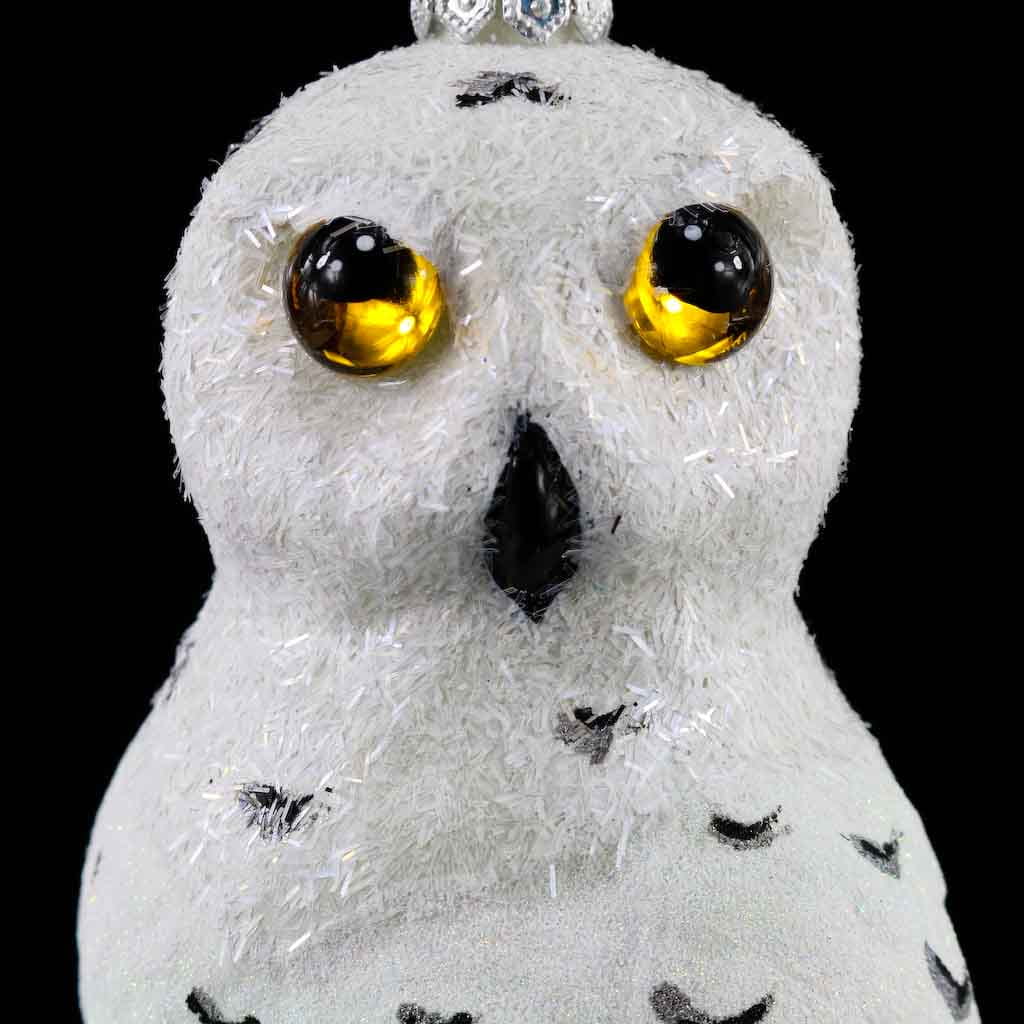 Sowa Puchacz Śnieżny forma szklana ręcznie malowana 12 cm