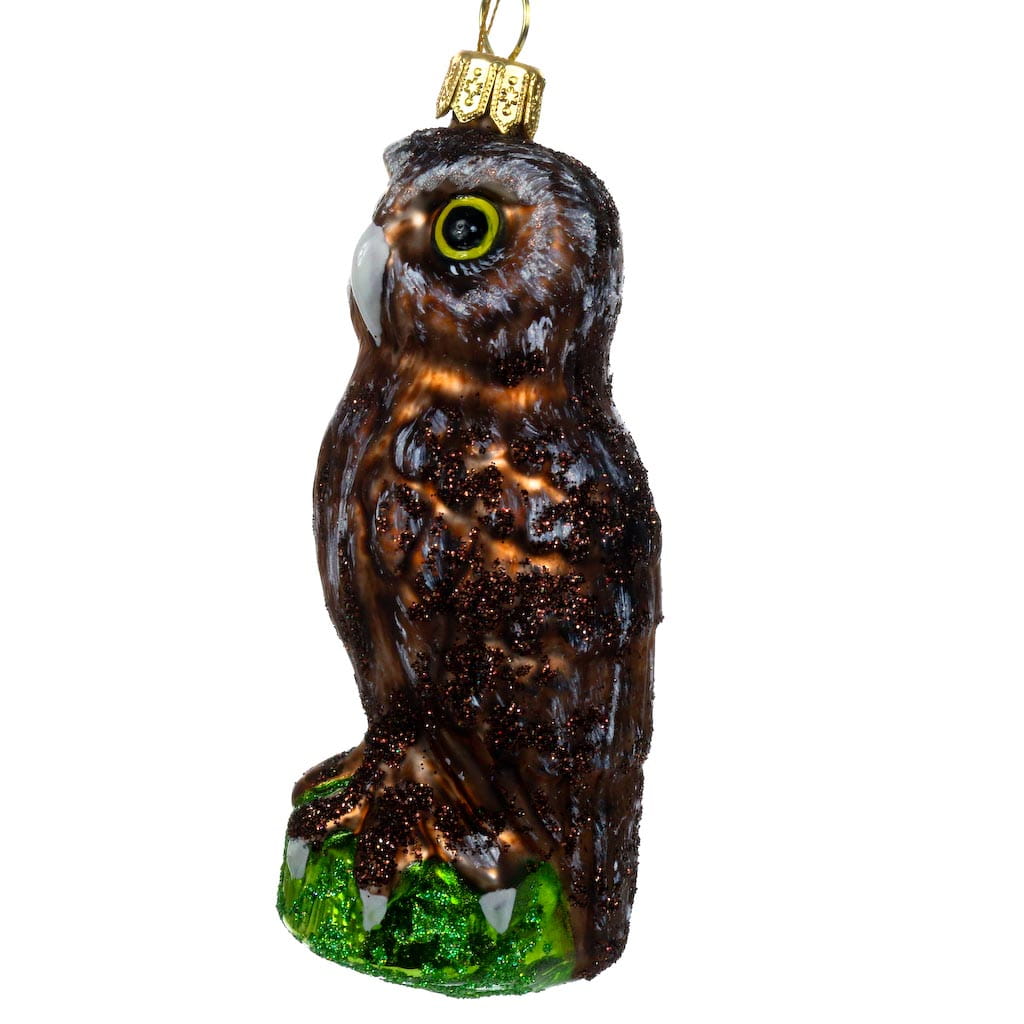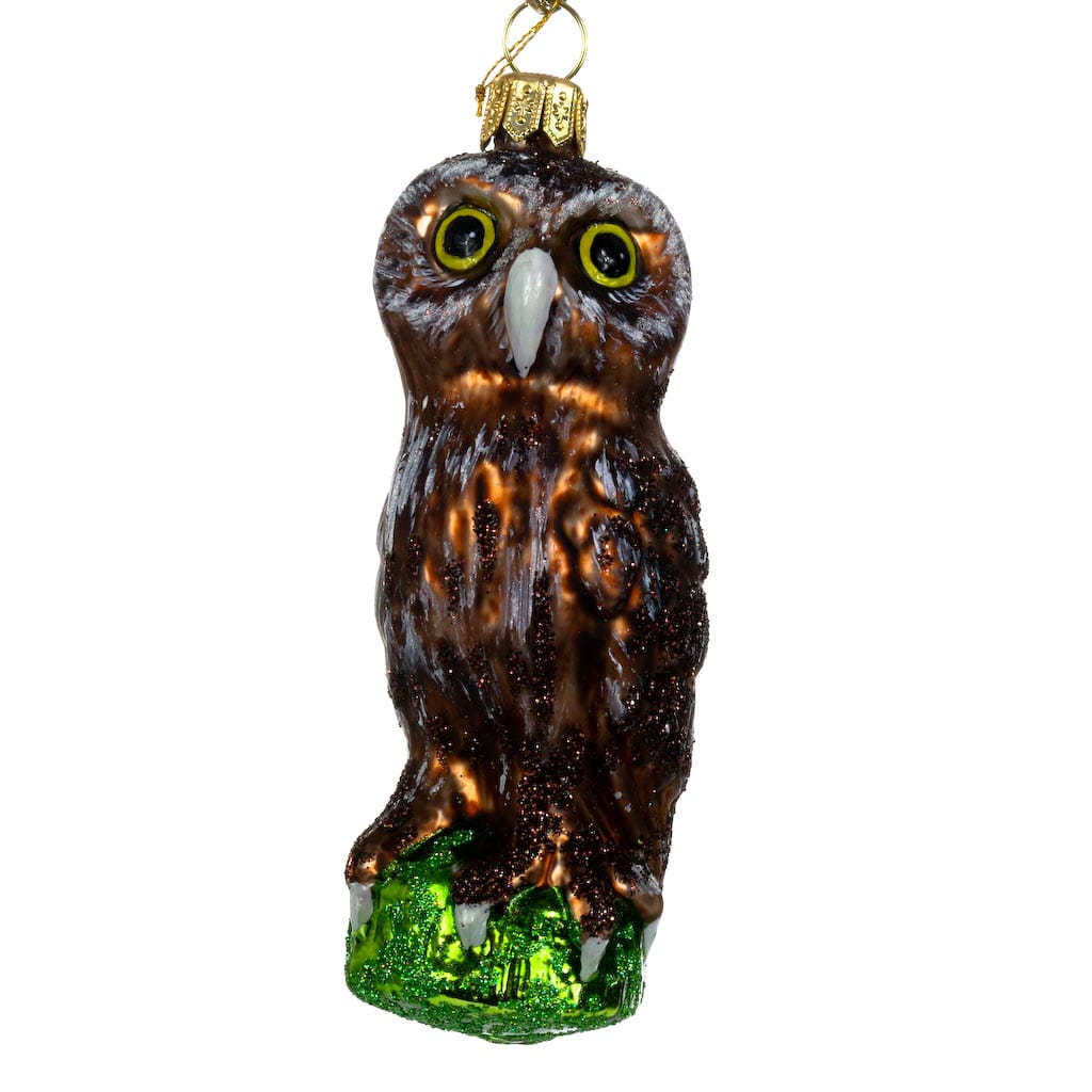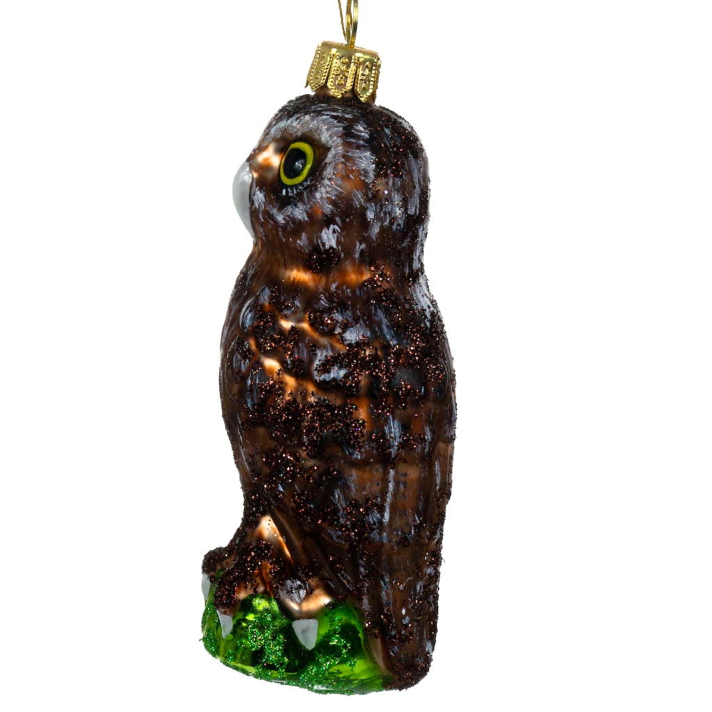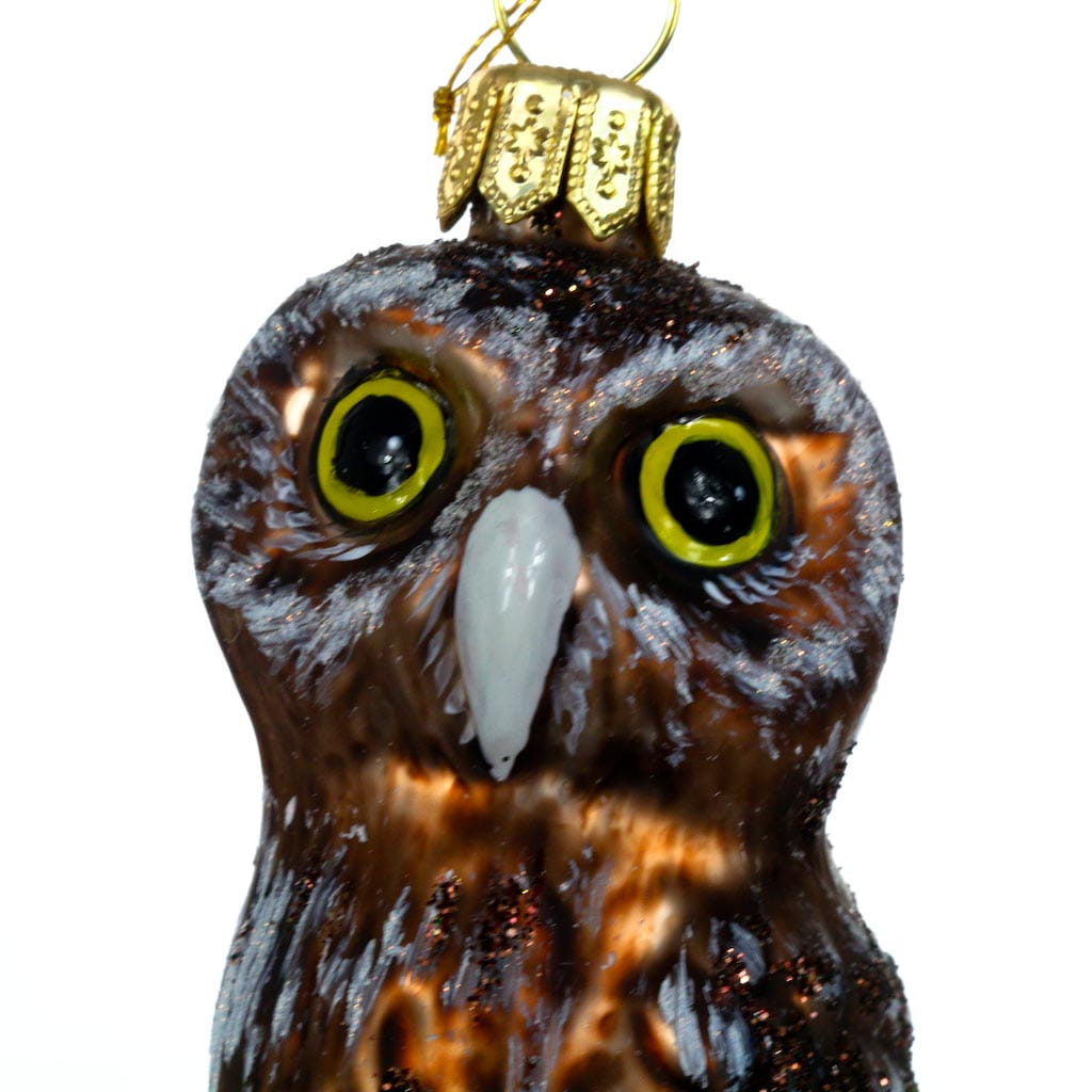Sówka mała szara bombka choinkowa szklana ręcznie malowana 9 cm
