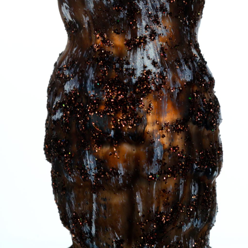 Każda szklana bombka jest bezpiecznie zapakowana w ozdobne czarno-złote pudełko z przezroczystym wieczkiem, które pełni funkcję prezentową.