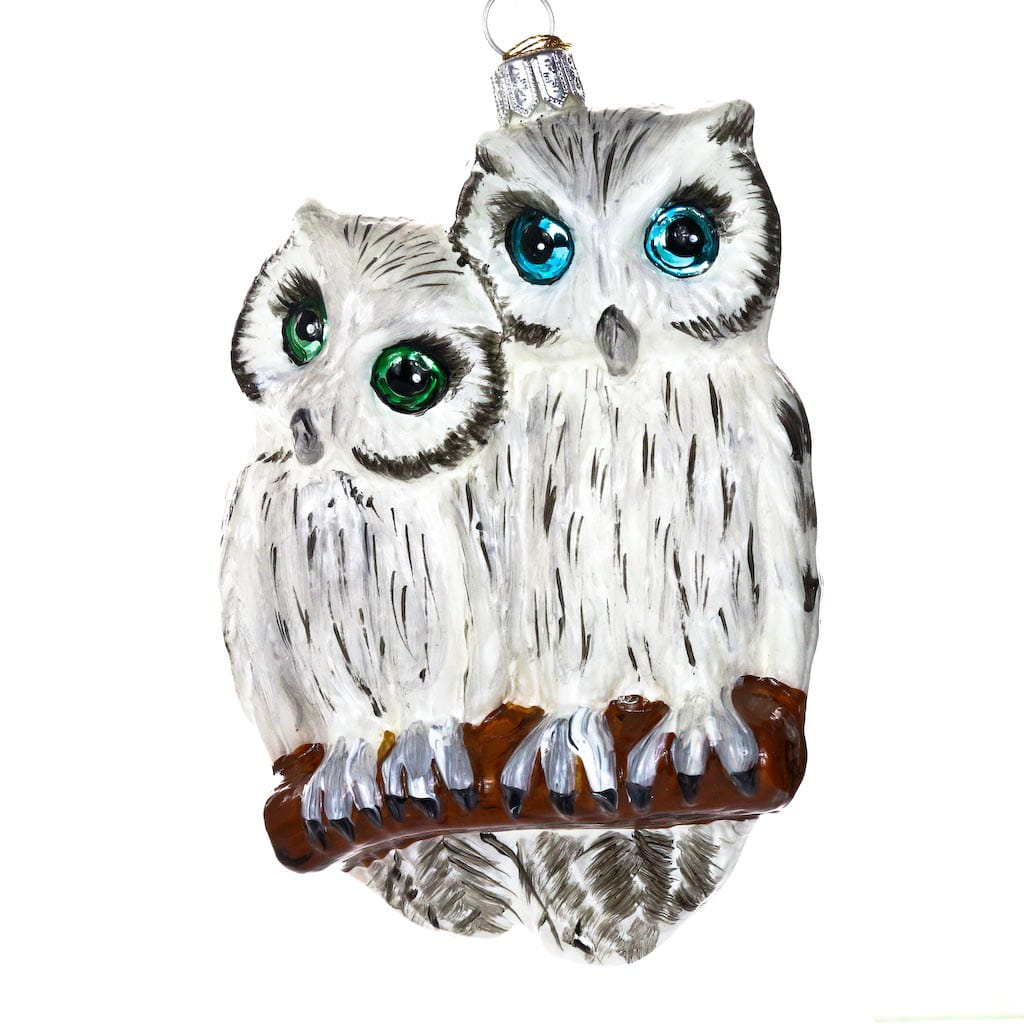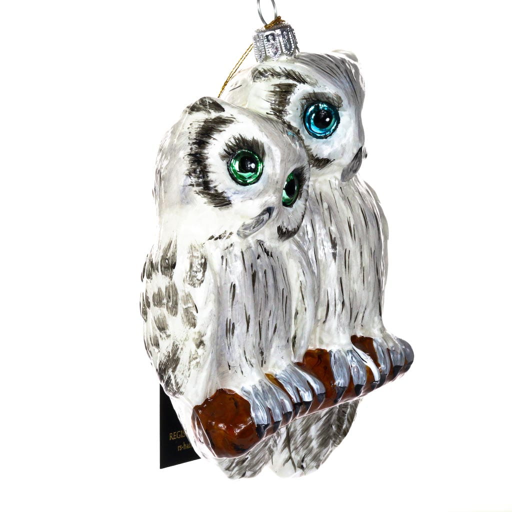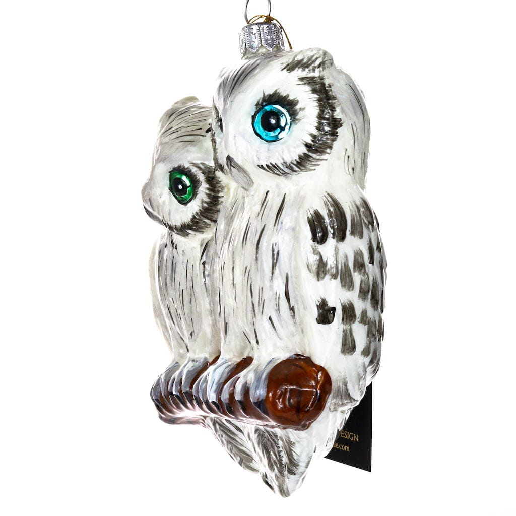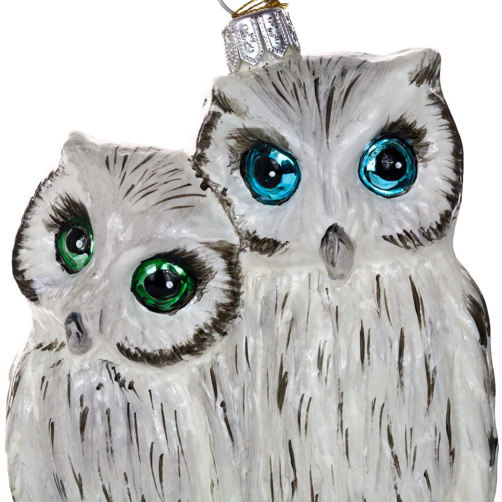 Bombka Sowy na porcelanie, szklana ręcznie malowana, wykonana z dmuchanego szkła.
