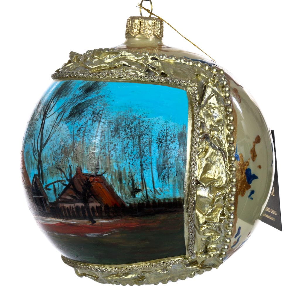 Vincent van Gogh Wiejskie chaty pośród drzew na szampanie, reprodukcja bombka szklana ręcznie malowana, bombka choinkowa 12 cm